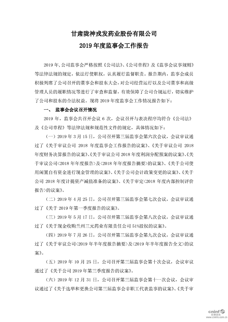 2019年度監(jiān)事會(huì)工作報(bào)告