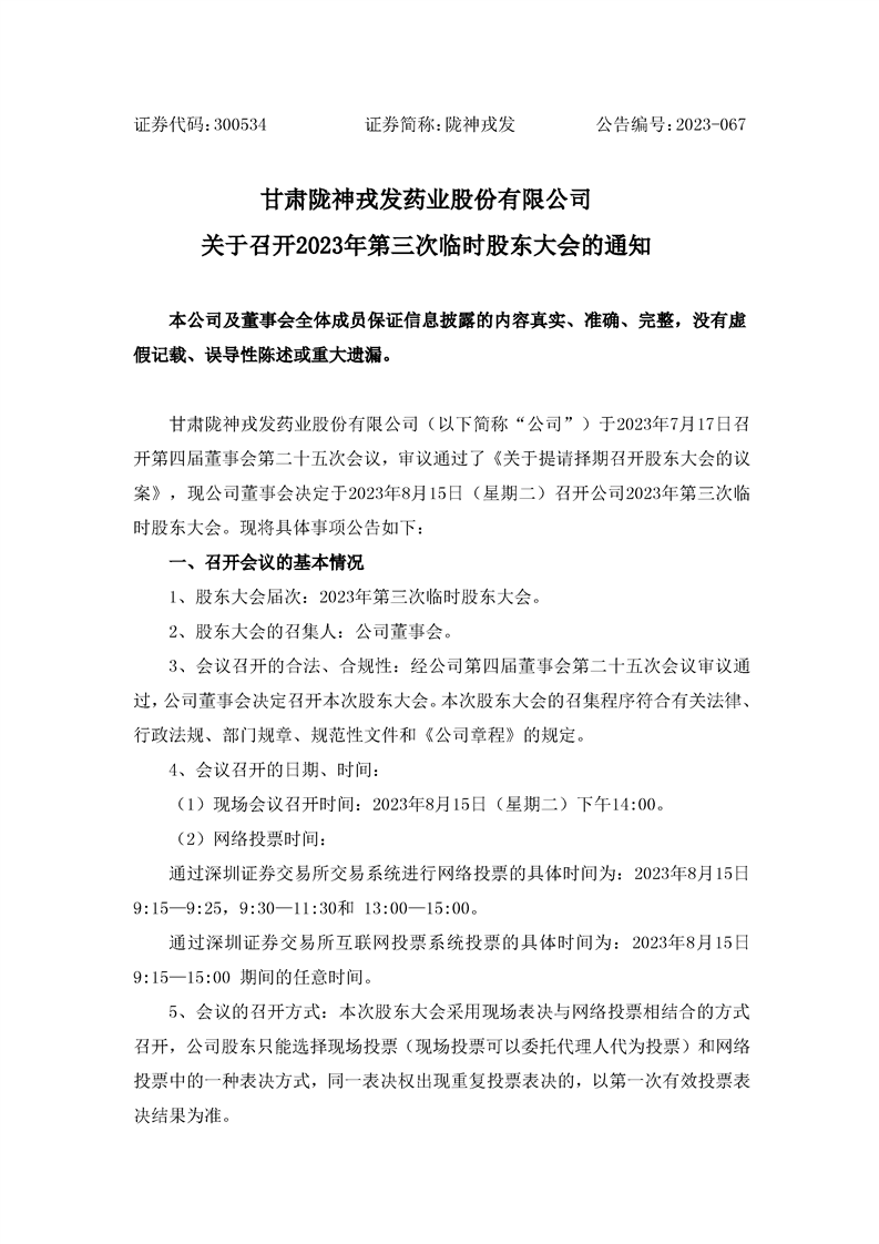 關于召開2023年第三次臨時股東大會的通知