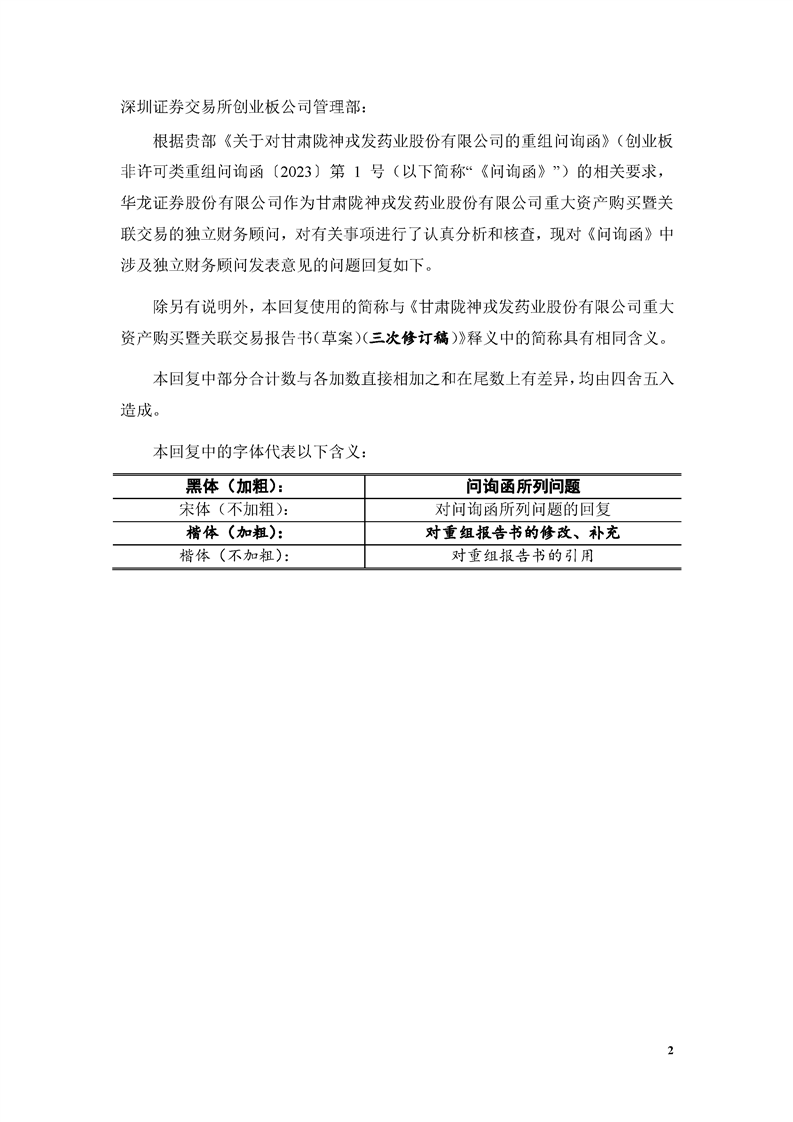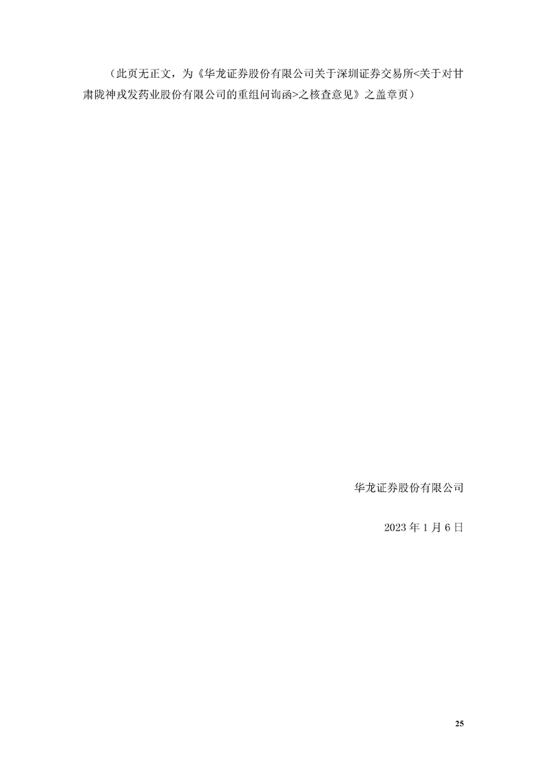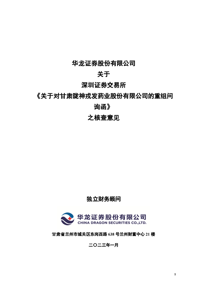 華龍證券股份有限公司關于深圳證券交易所《關于對甘肅隴神戎發(fā)藥業(yè)股份有限公司的重組問詢函》之核查意見