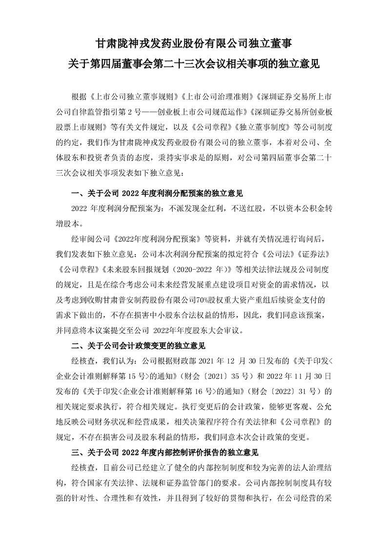 獨立董事關于第四屆董事會第二十三次會議相關事項的獨立意見