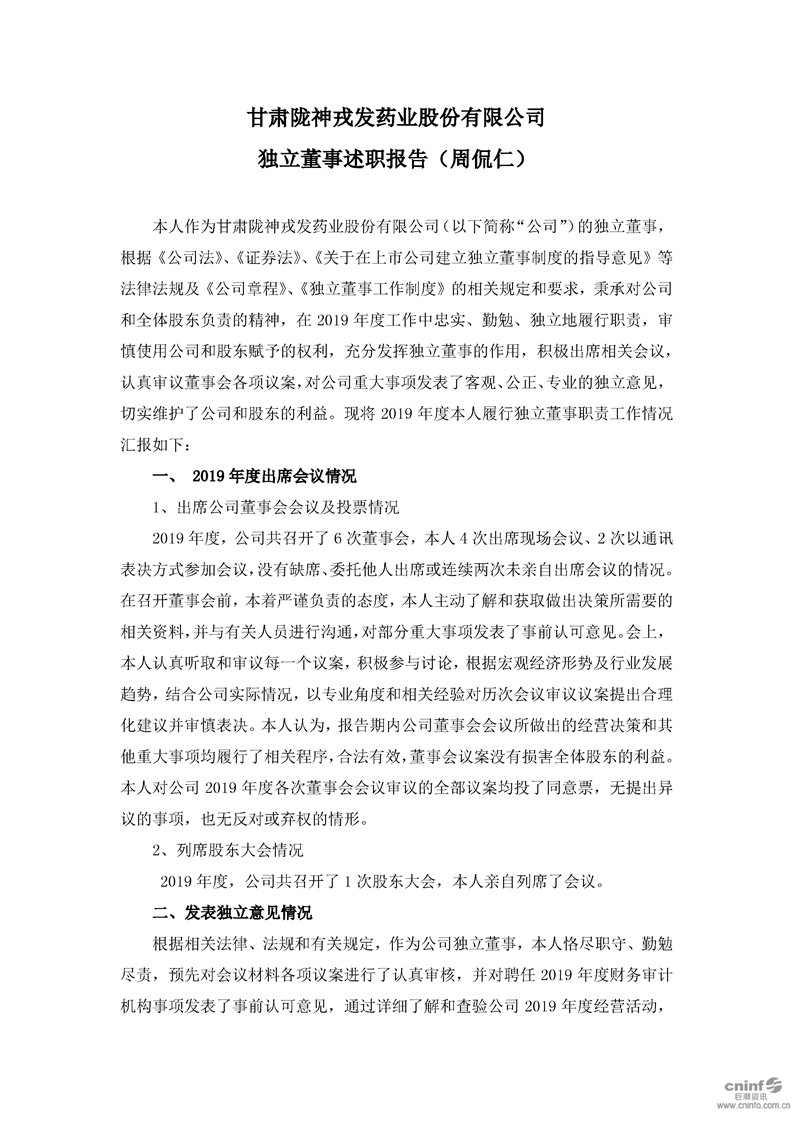 獨(dú)立董事述職報(bào)告(周侃仁)