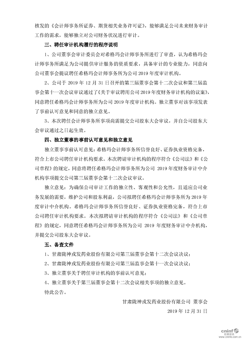 關于擬聘任2019年度審計機構的公告(更新后)