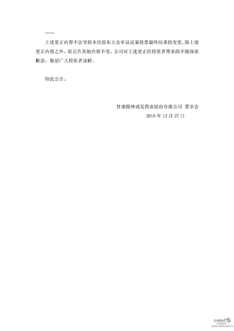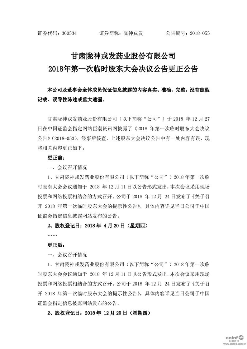 2018年第一次臨時(shí)股東大會(huì)決議公告更正公告