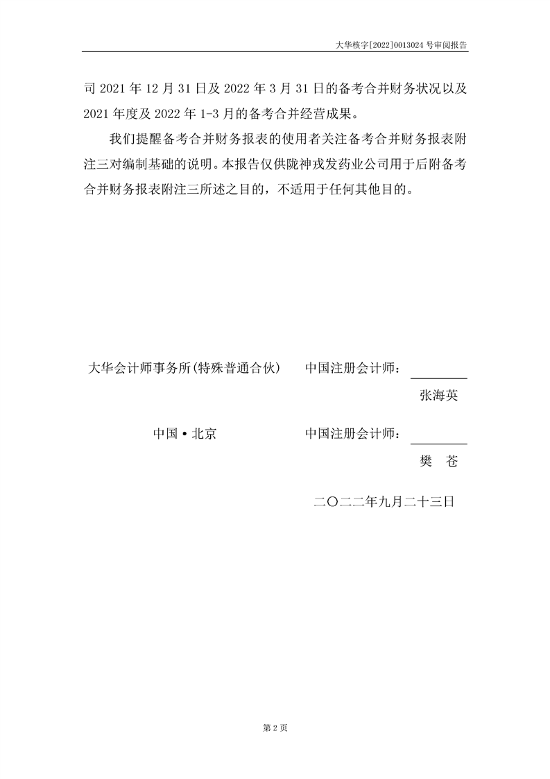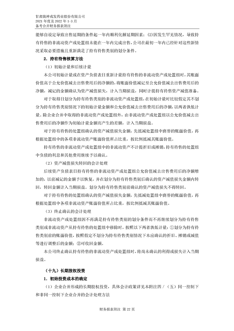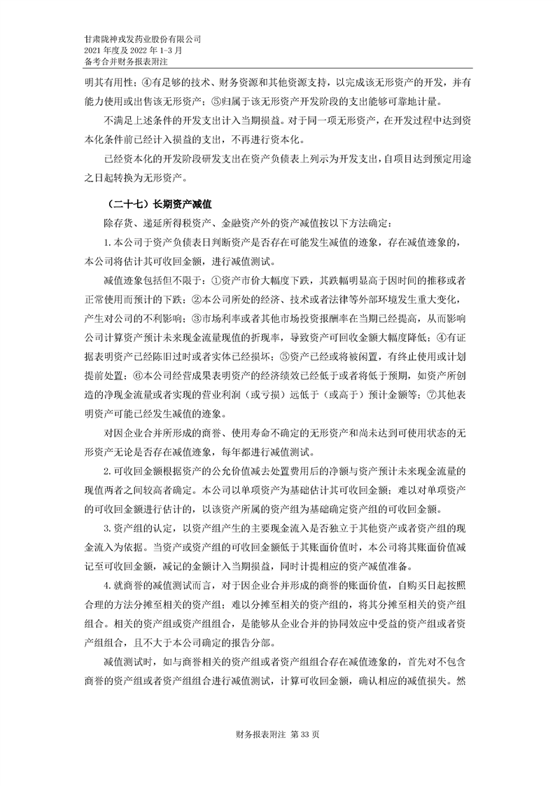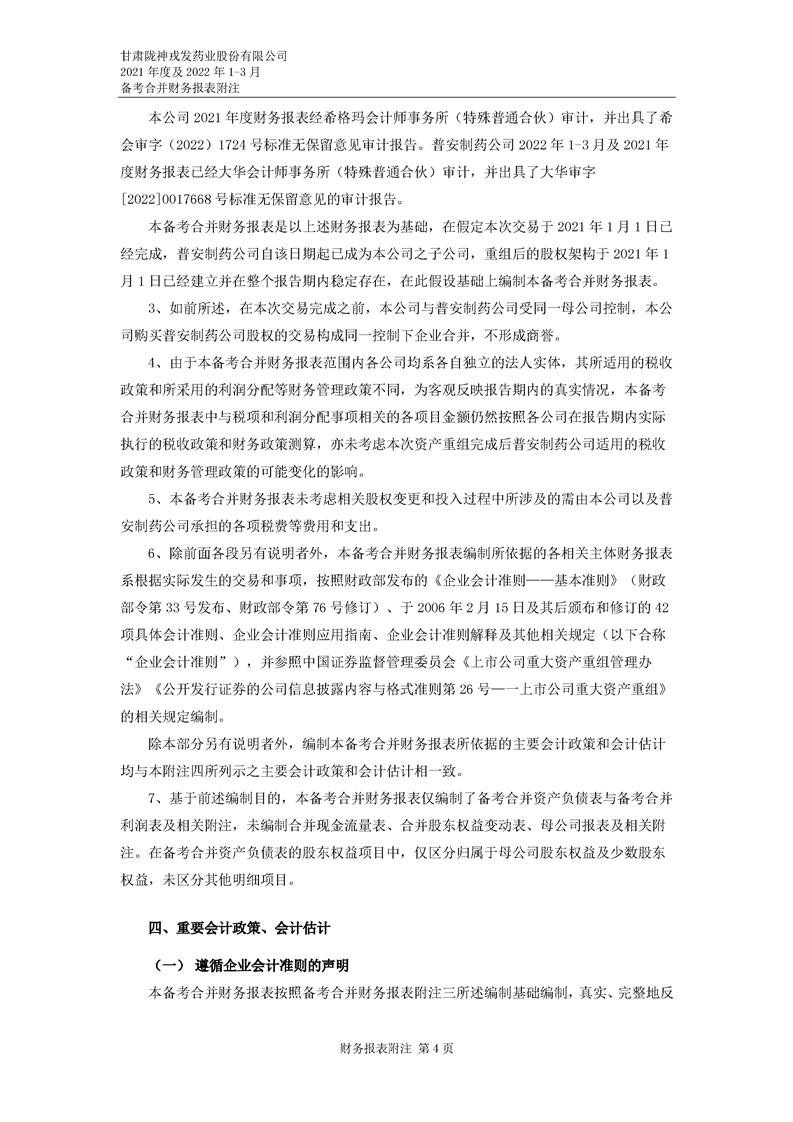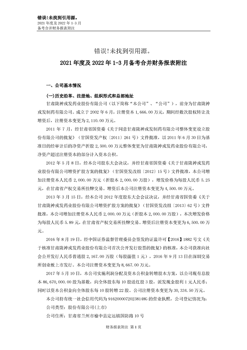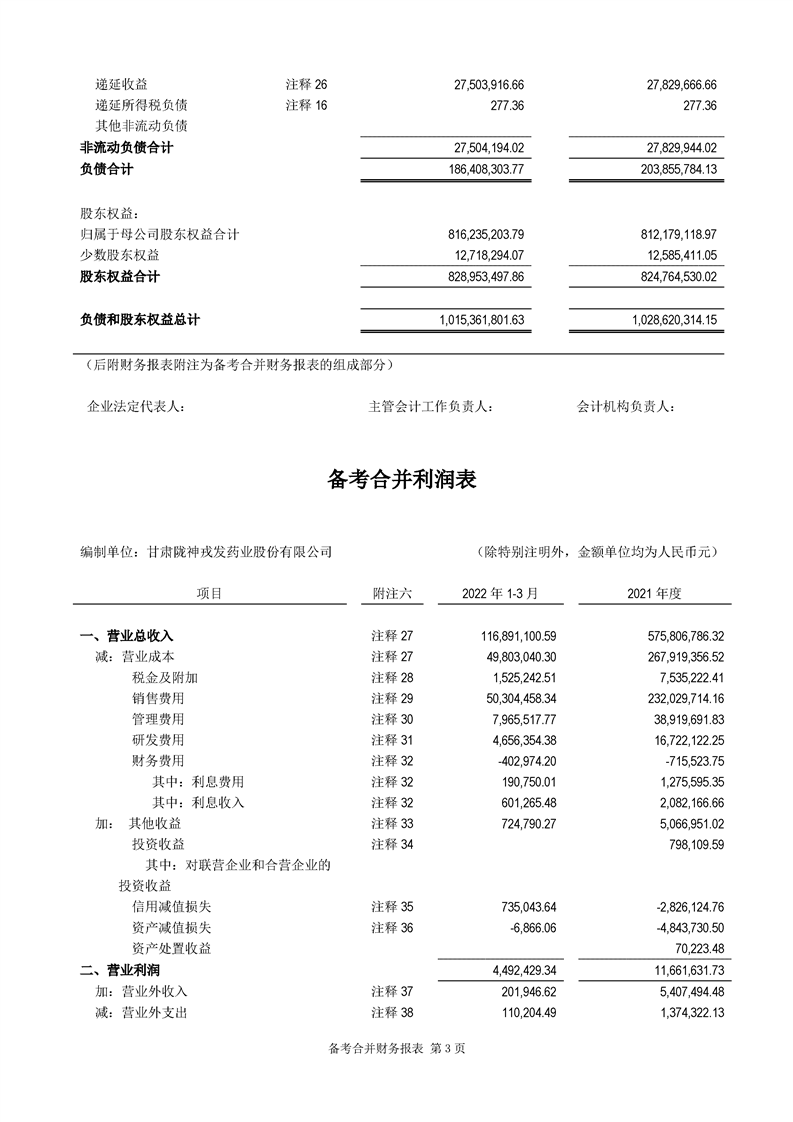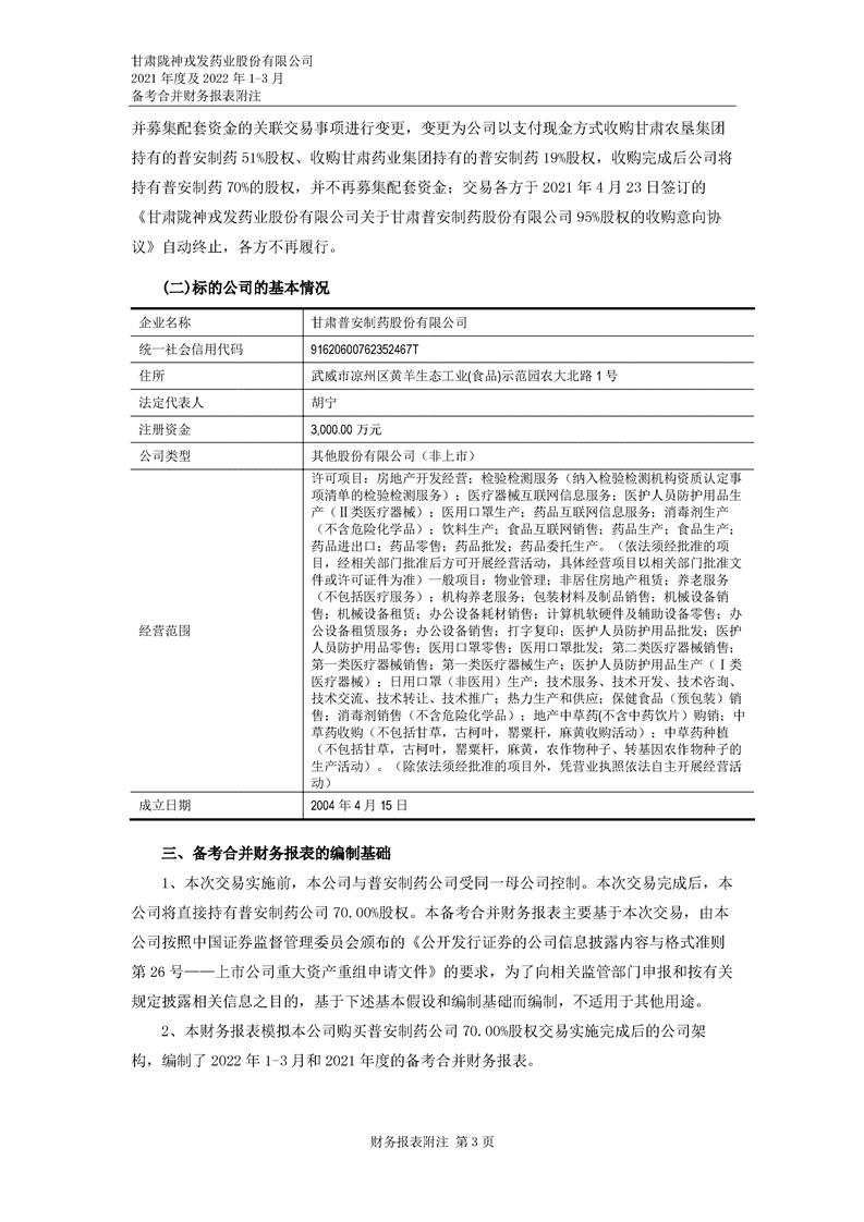 甘肅隴神戎發藥業股份有限公司備考財務報表審閱報告