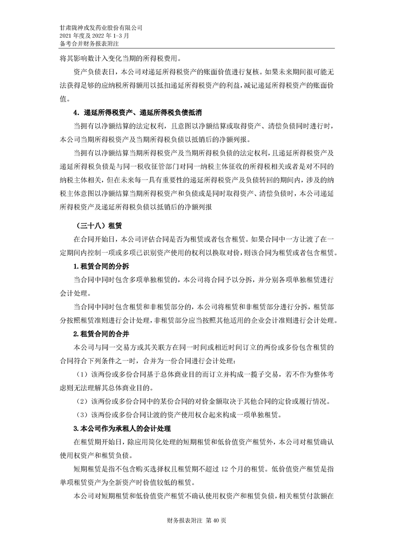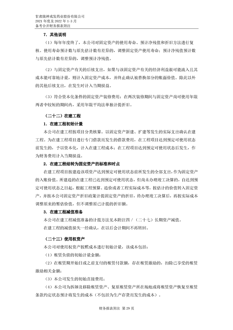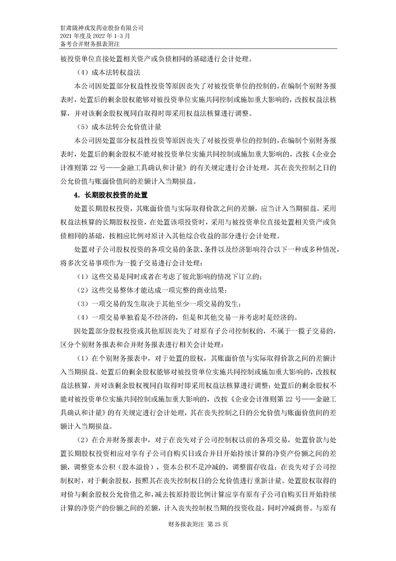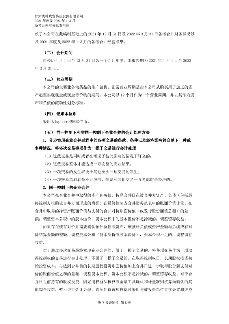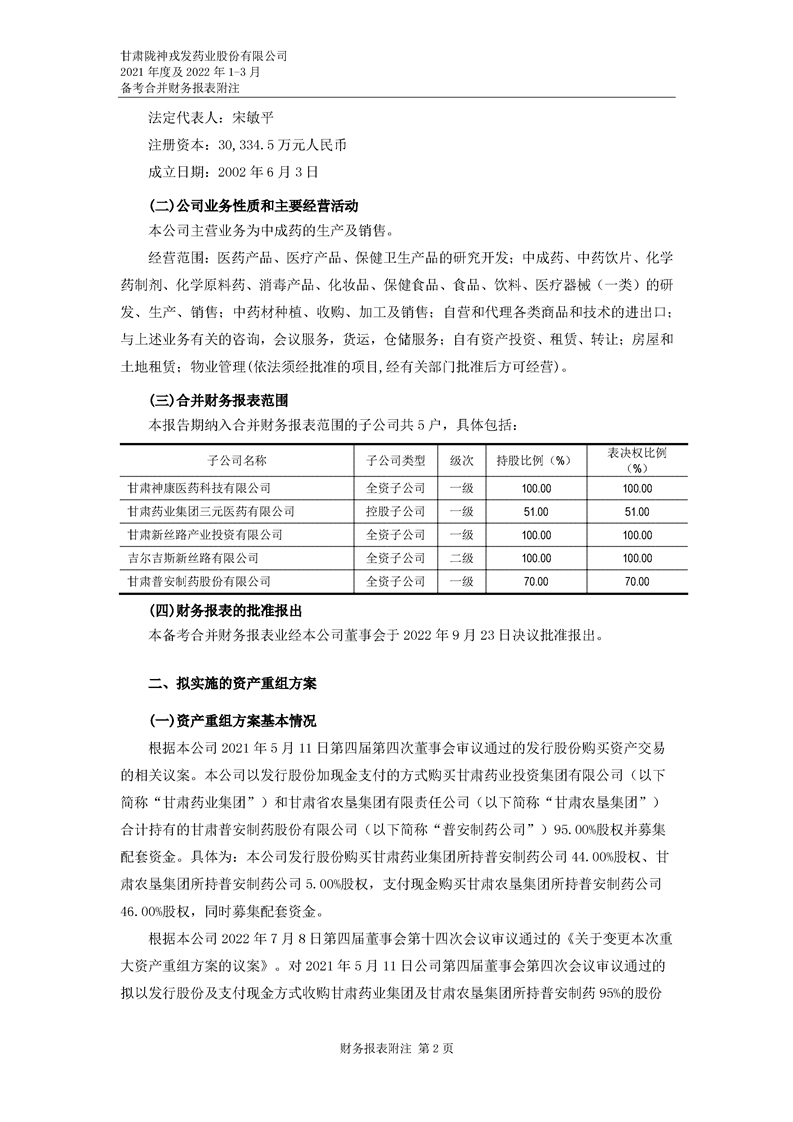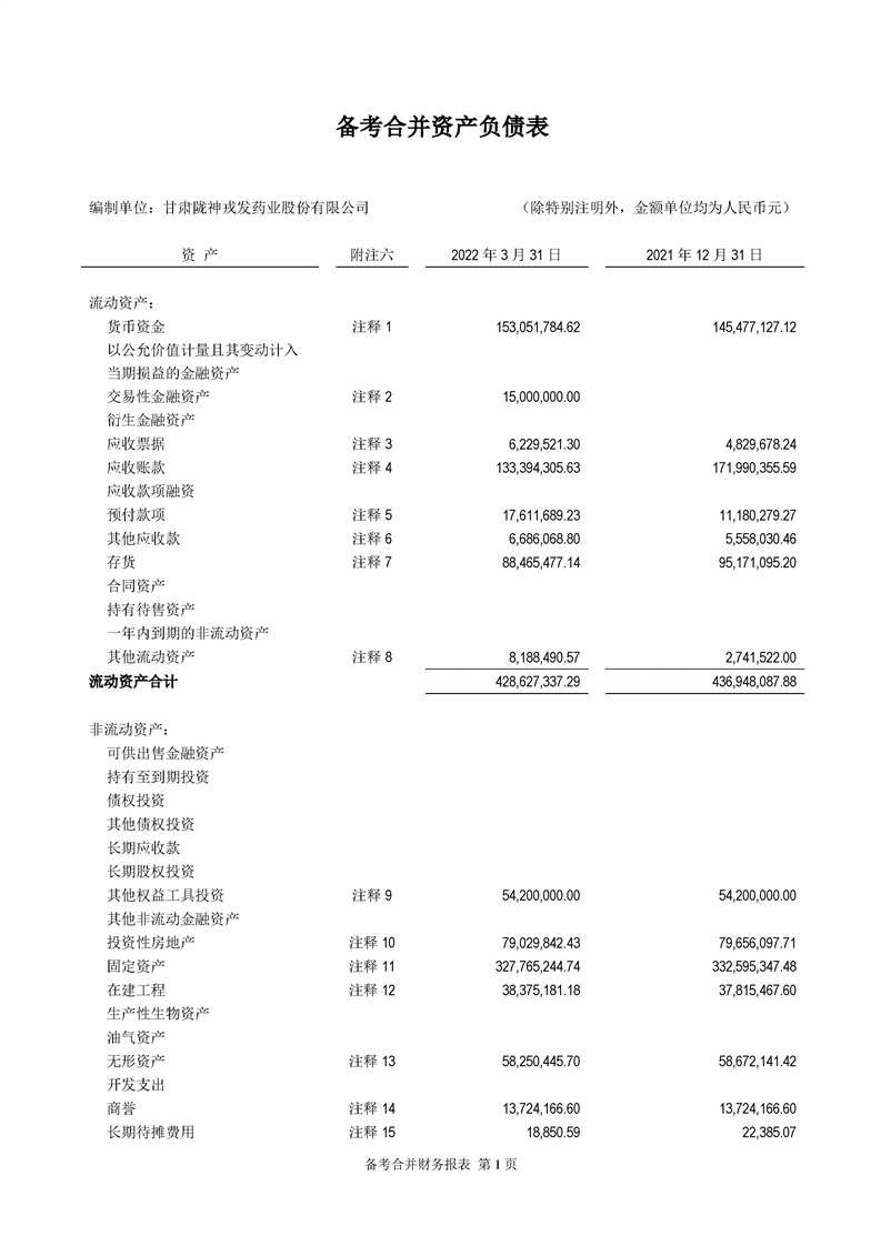 甘肅隴神戎發藥業股份有限公司備考財務報表審閱報告