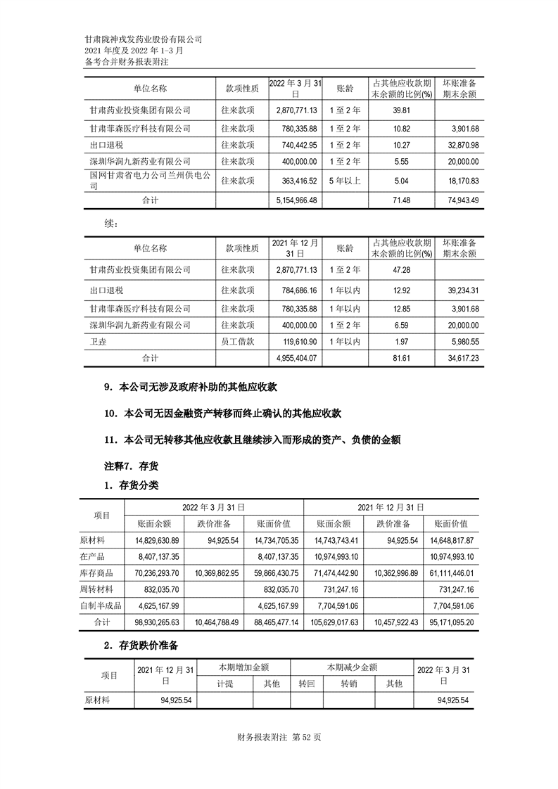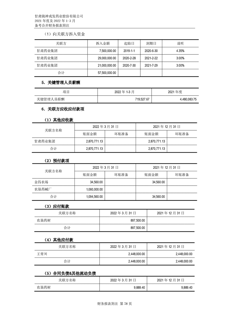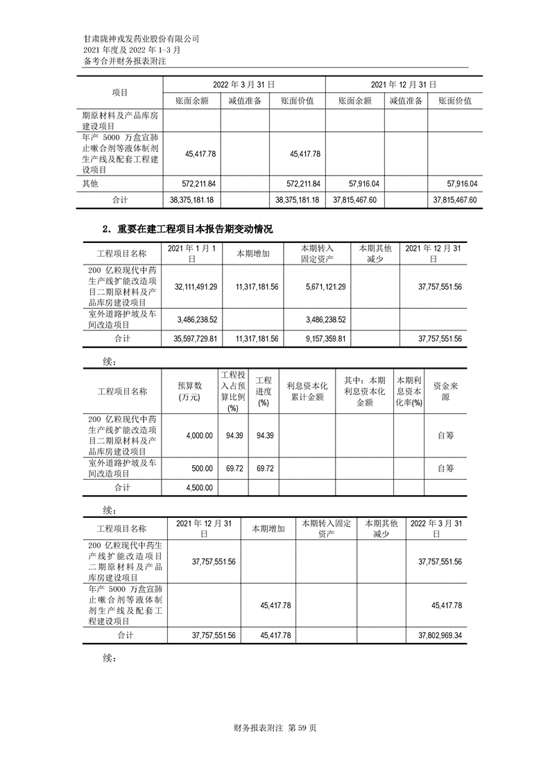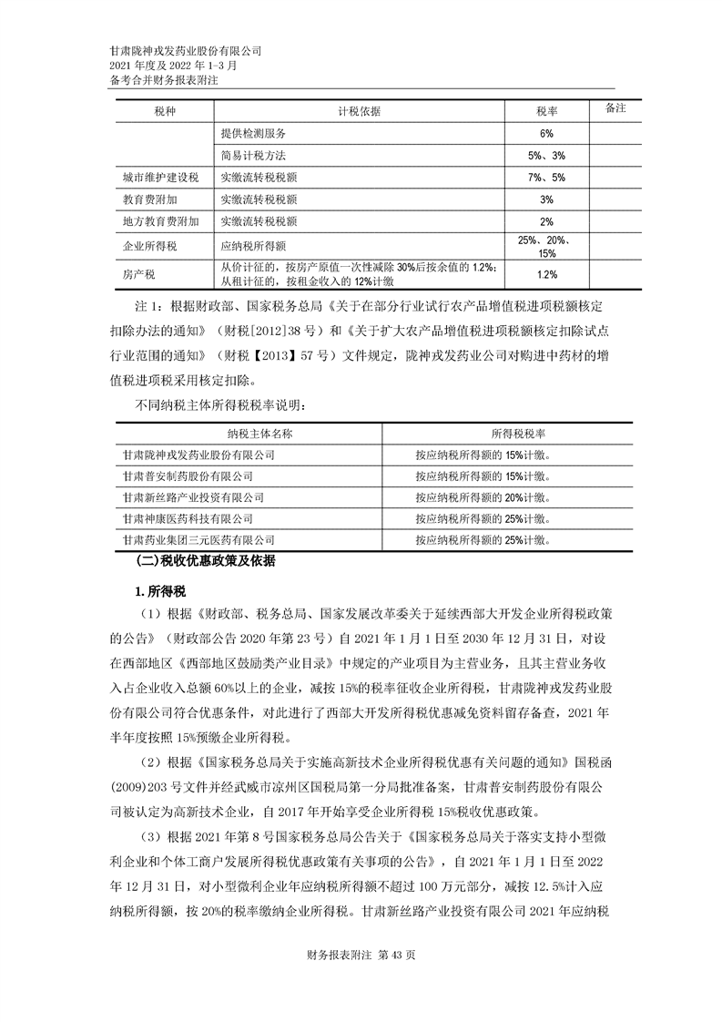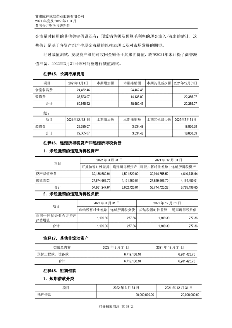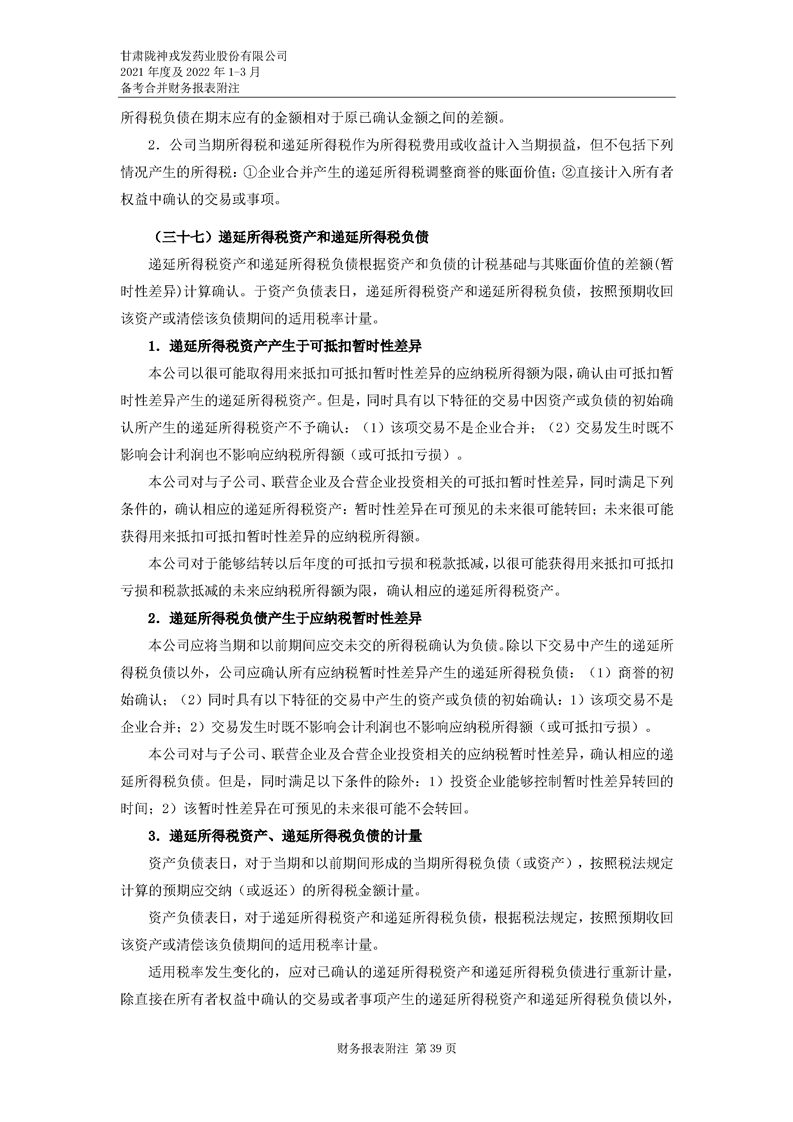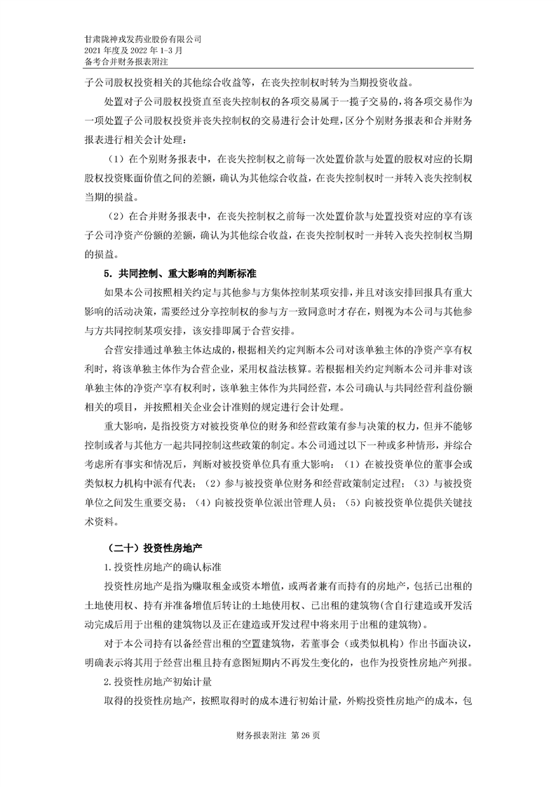 甘肅隴神戎發藥業股份有限公司備考財務報表審閱報告
