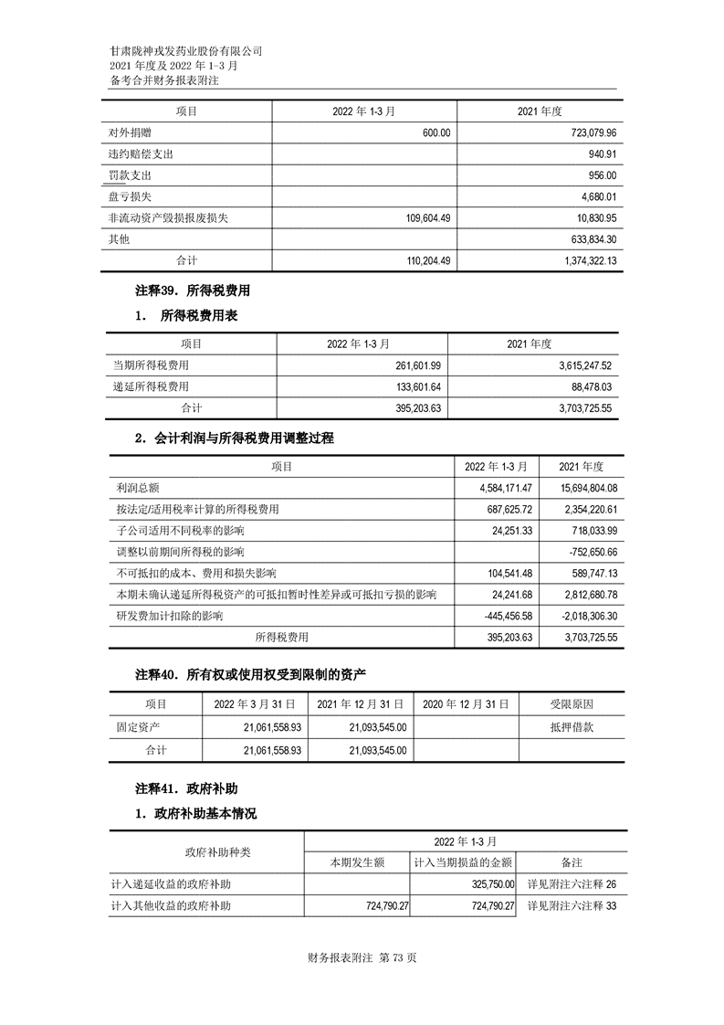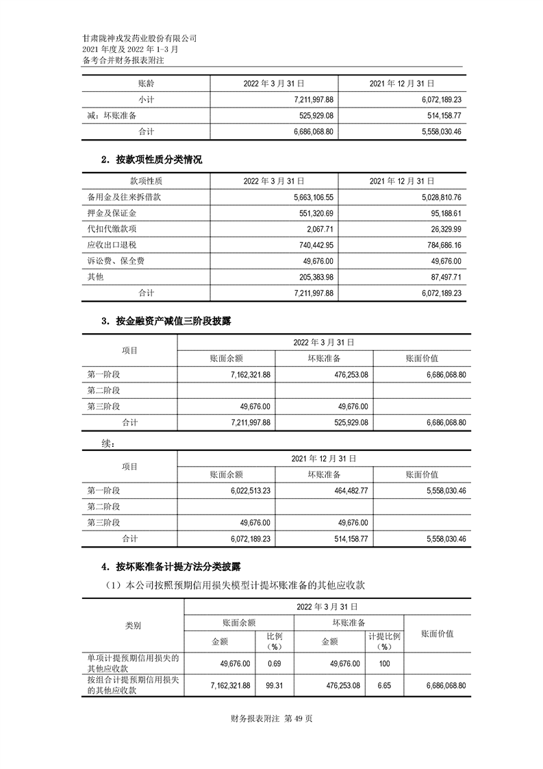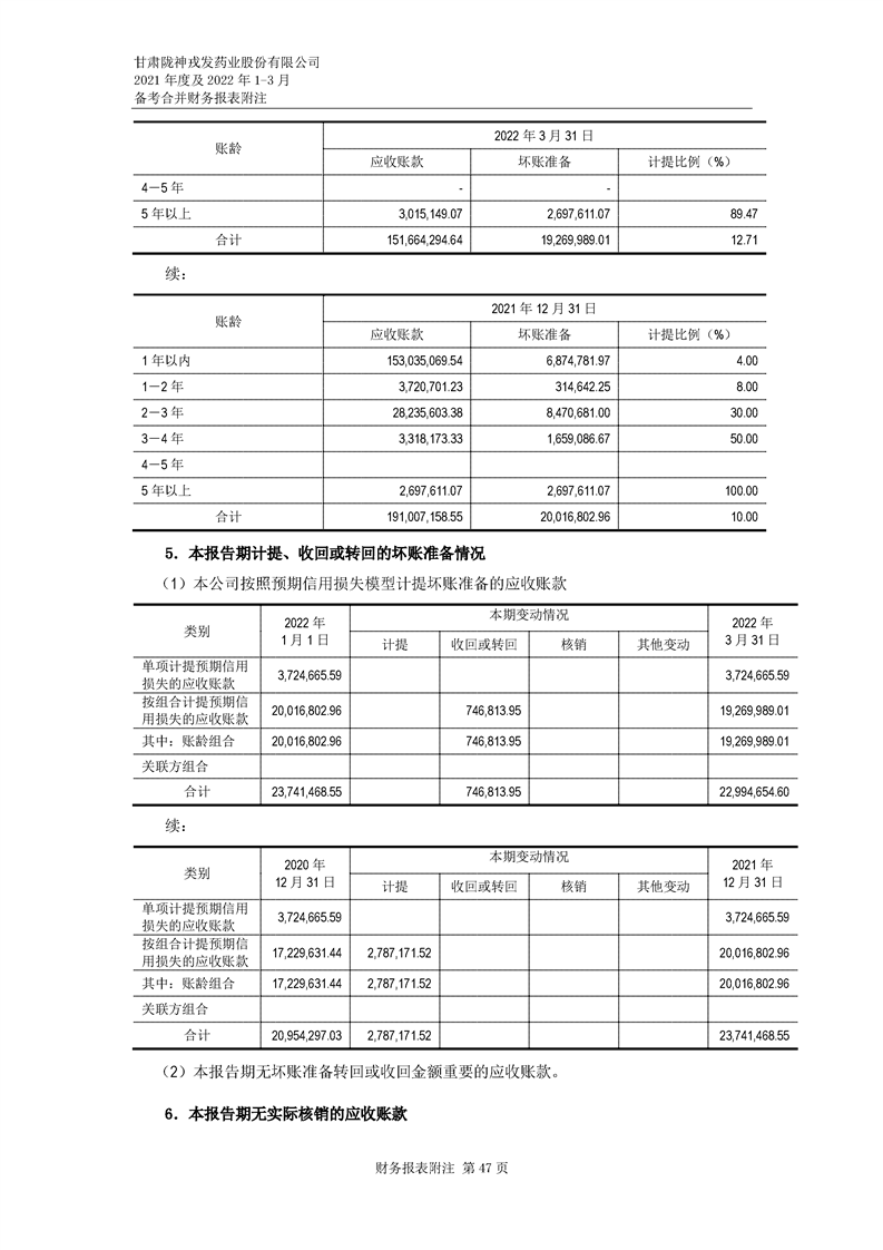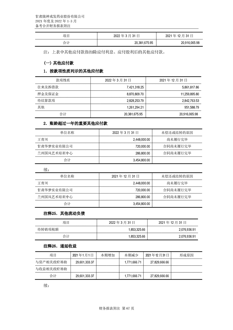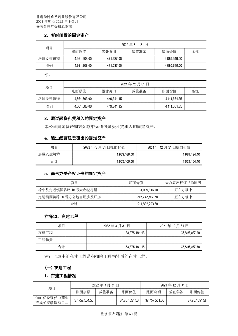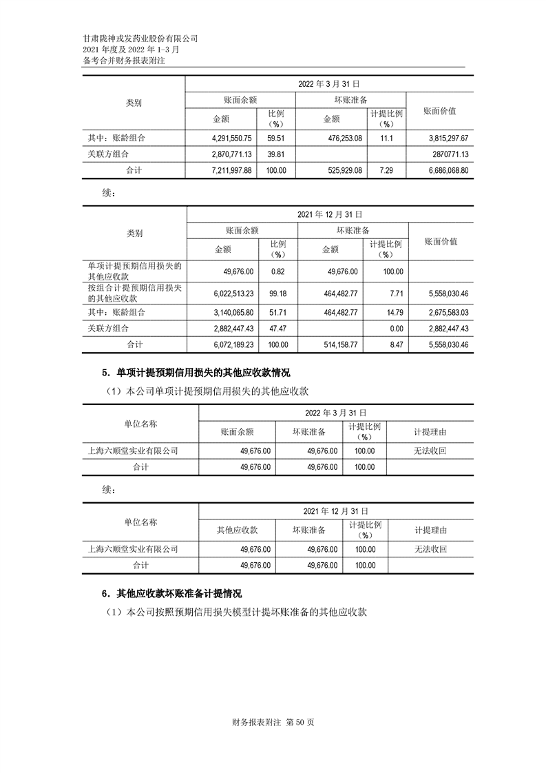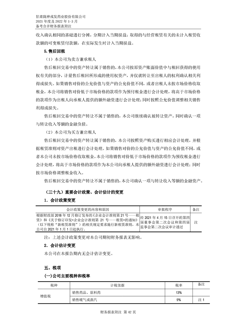 甘肅隴神戎發藥業股份有限公司備考財務報表審閱報告