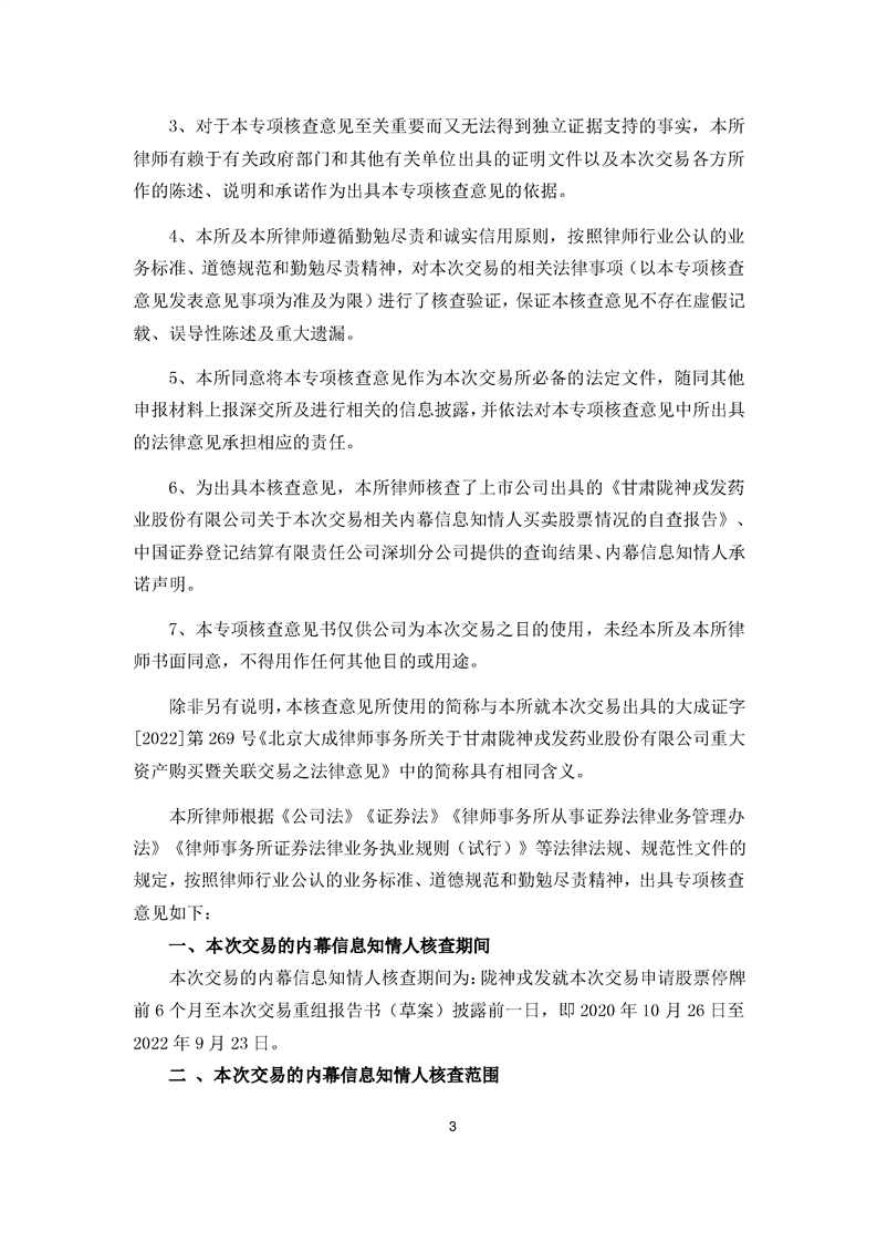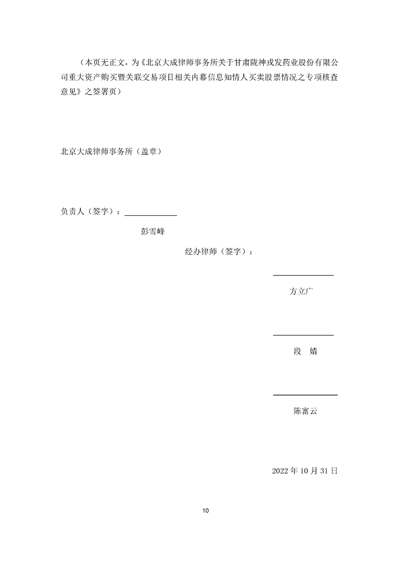 北京大成律師事務所關于本次重大資產重組內幕信息知情人買賣股票專項核查意見