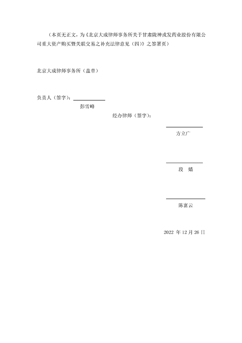 北京大成律師事務(wù)所關(guān)于甘肅隴神戎發(fā)藥業(yè)股份有限公司重大資產(chǎn)購(gòu)買暨關(guān)聯(lián)交易補(bǔ)充法律意見(jiàn)(四)
