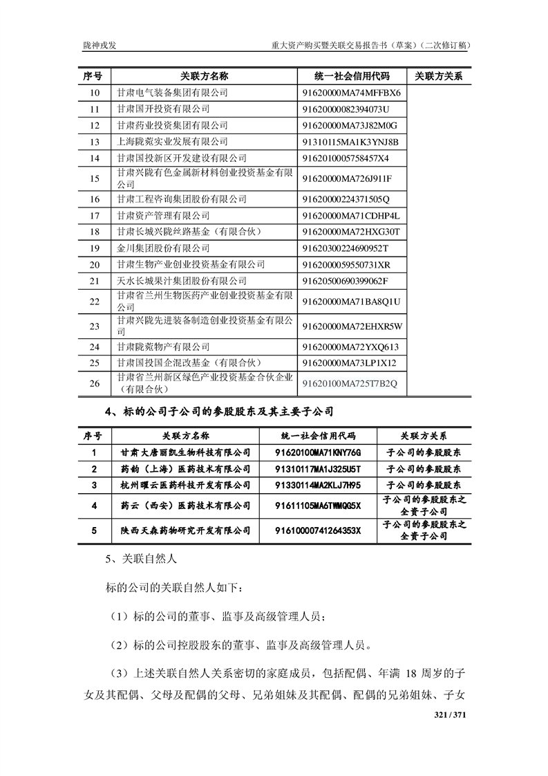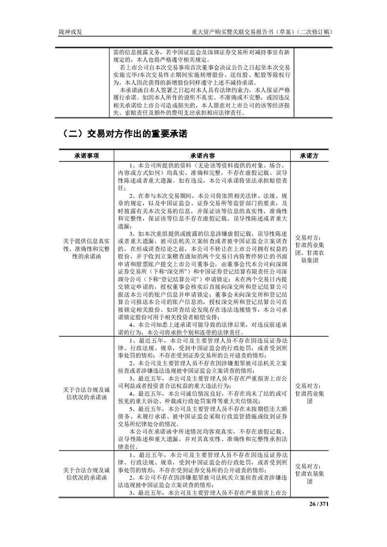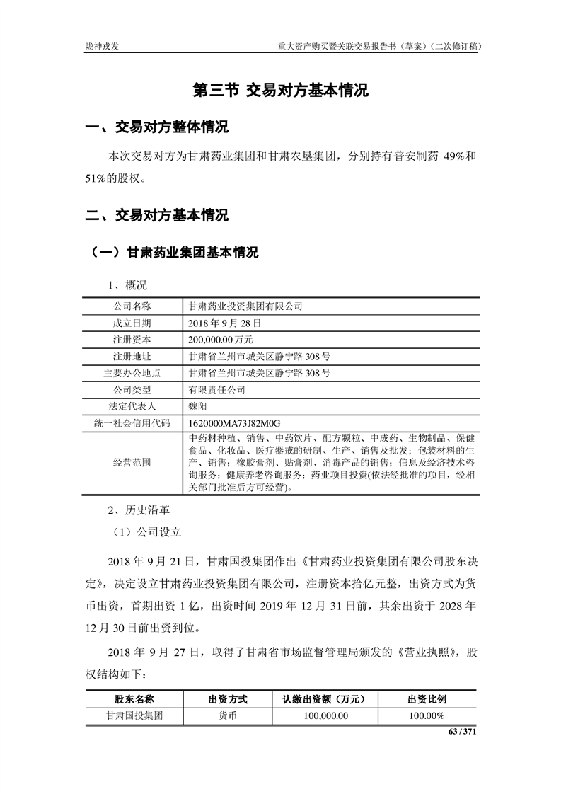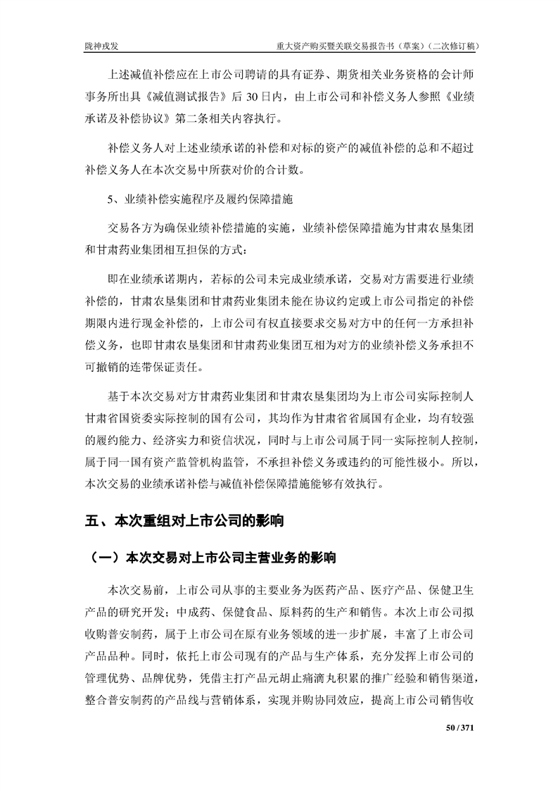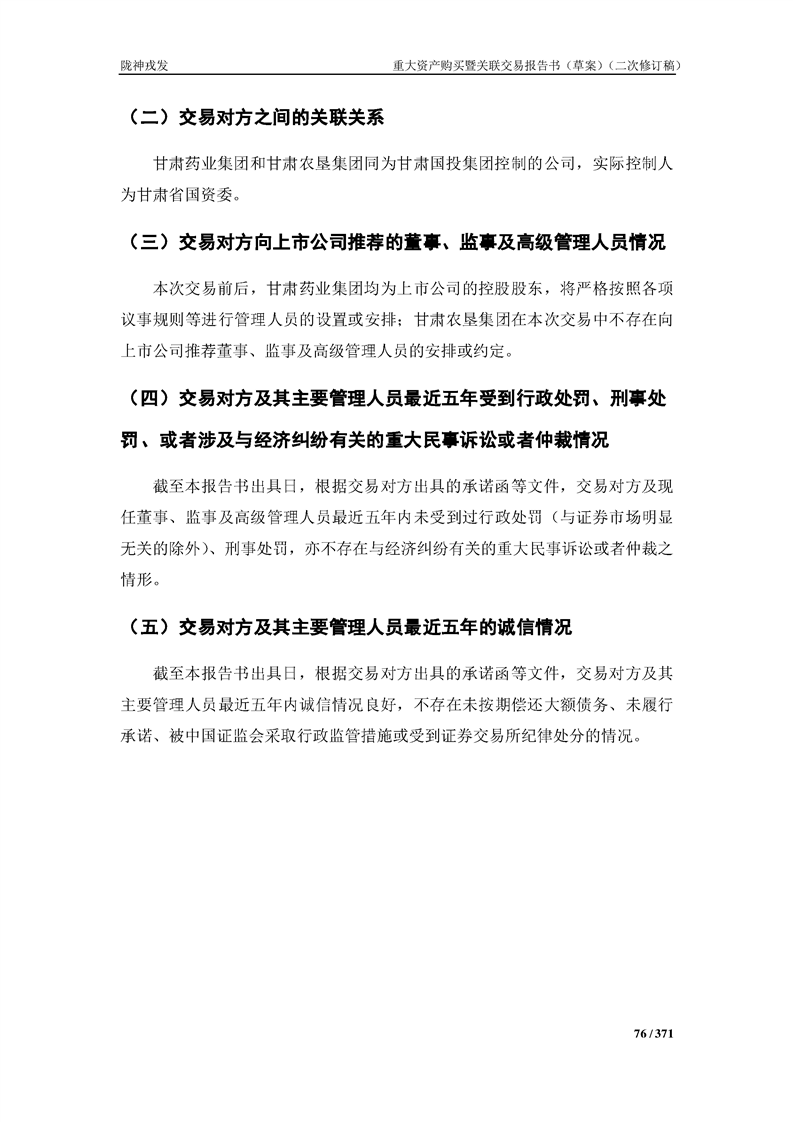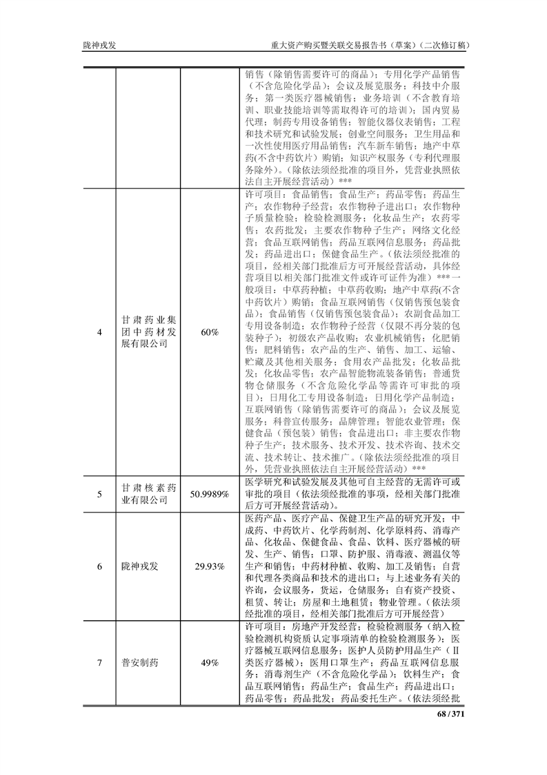 甘肅隴神戎發(fā)藥業(yè)股份有限公司重大資產(chǎn)購買暨關(guān)聯(lián)交易報告書(草案)(二次修訂稿)