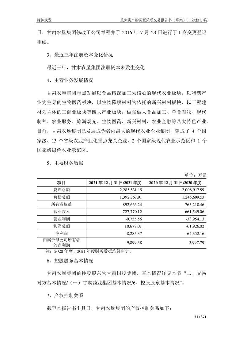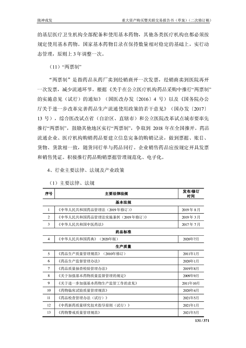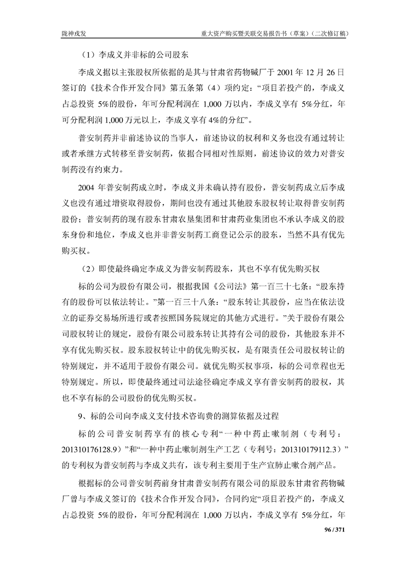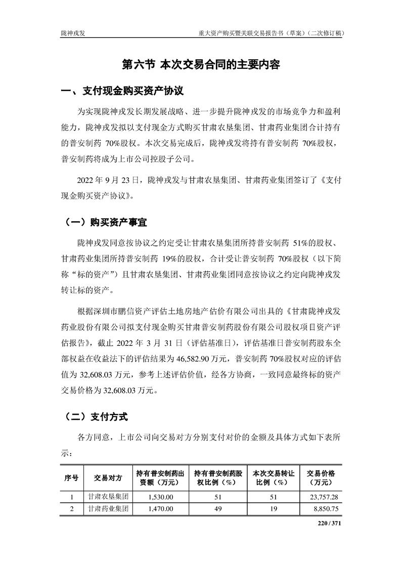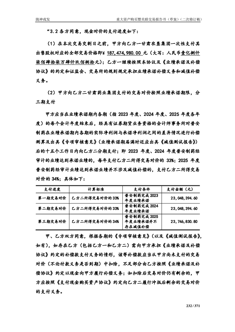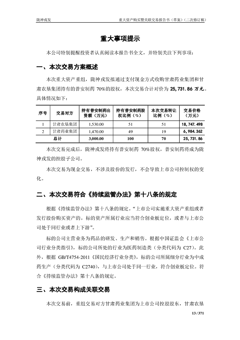 甘肅隴神戎發(fā)藥業(yè)股份有限公司重大資產(chǎn)購買暨關(guān)聯(lián)交易報告書(草案)(二次修訂稿)