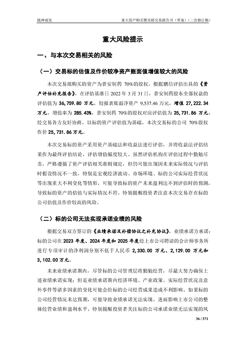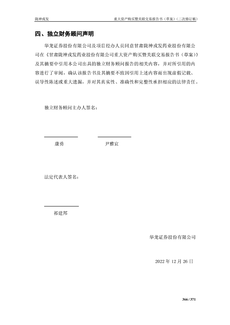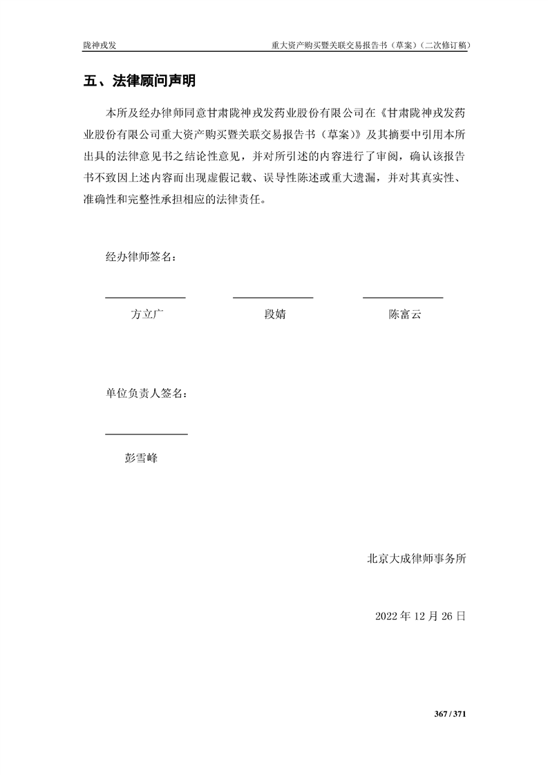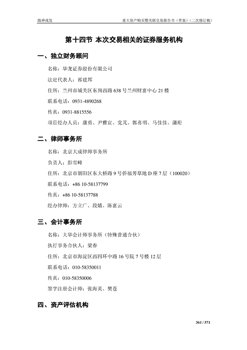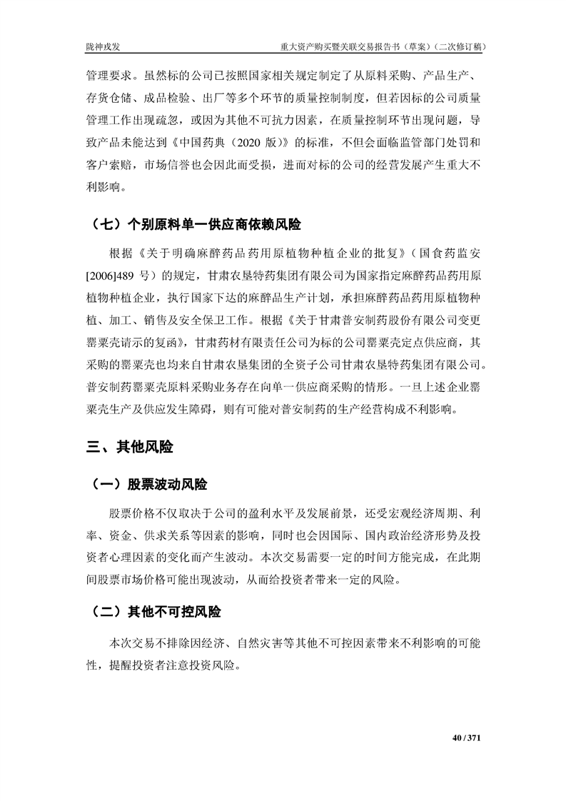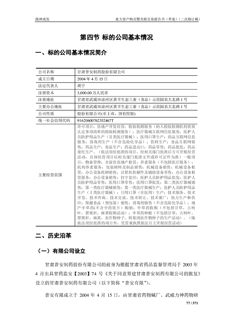 甘肅隴神戎發(fā)藥業(yè)股份有限公司重大資產(chǎn)購買暨關(guān)聯(lián)交易報告書(草案)(二次修訂稿)