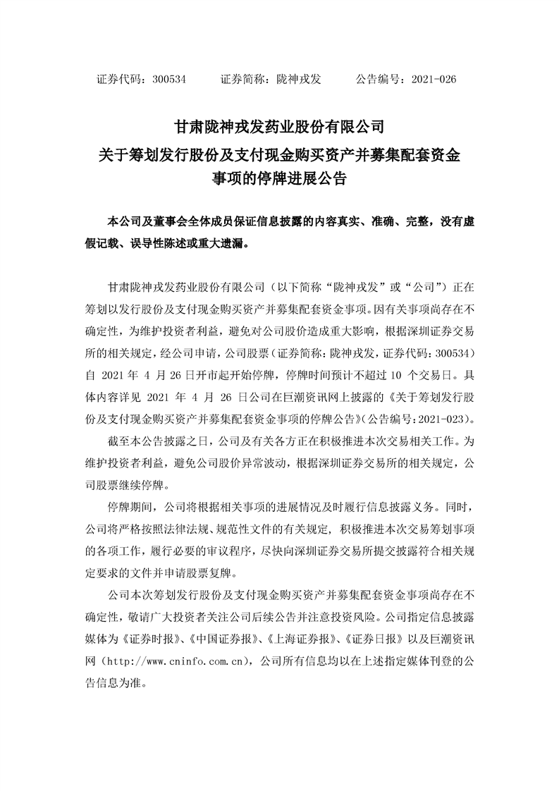 關(guān)于籌劃發(fā)行股份及支付現(xiàn)金購買資產(chǎn)并募集配套資金事項(xiàng)停牌的進(jìn)展公告