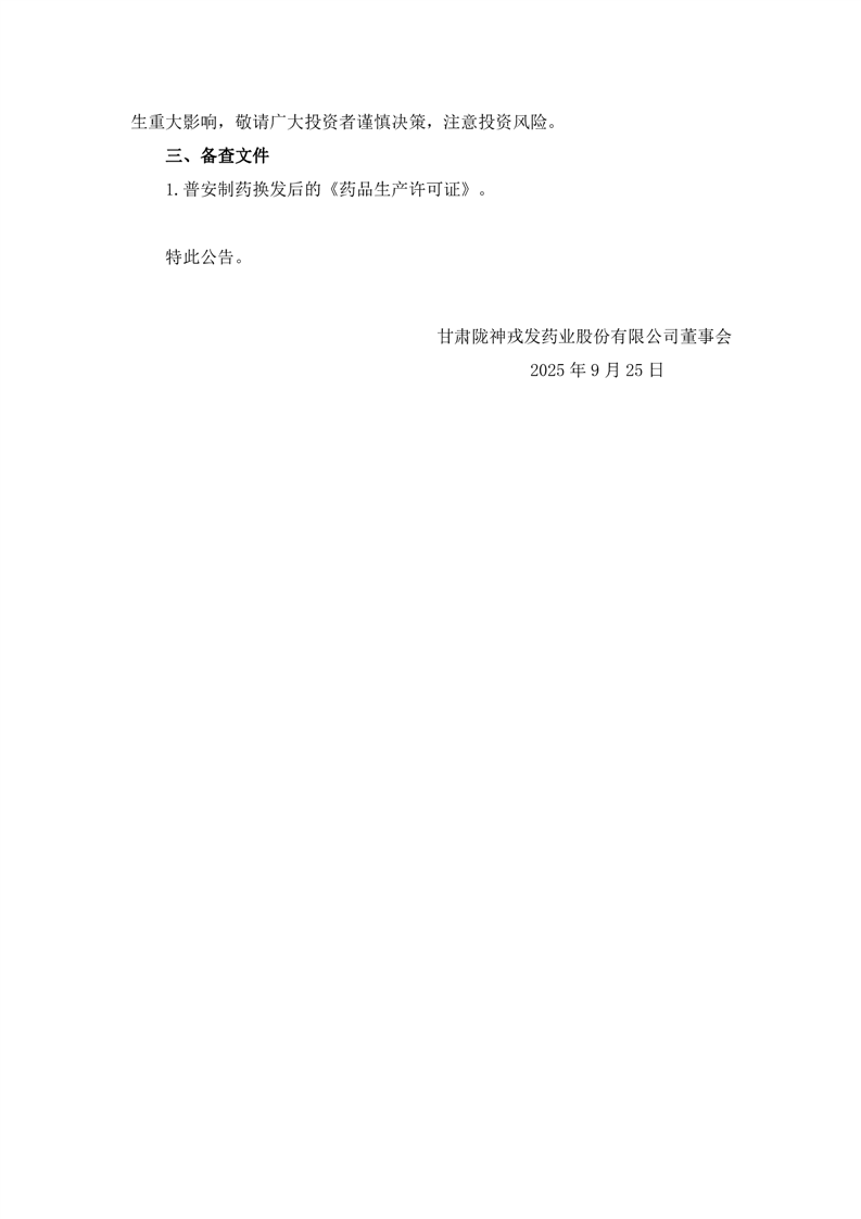 關于控股子公司取得換發后的《藥品生產許可證》的公告