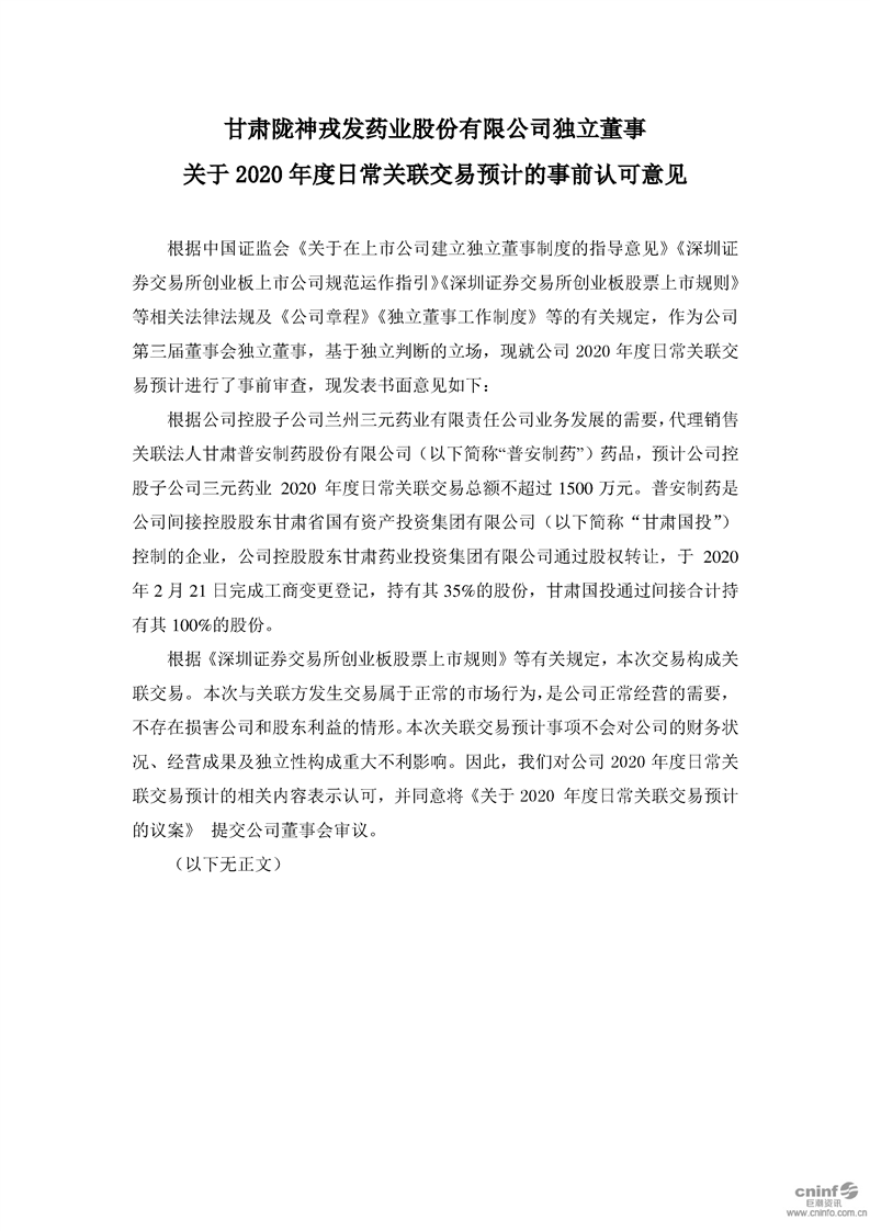 獨立董事關于2020年度日常關聯交易預計的事前認可意見