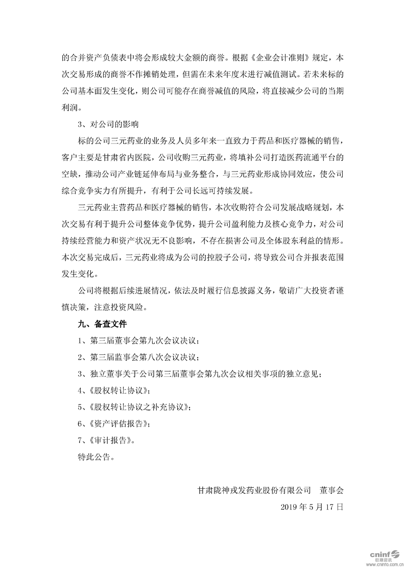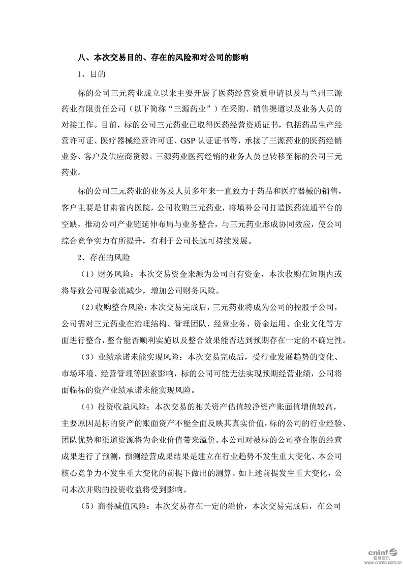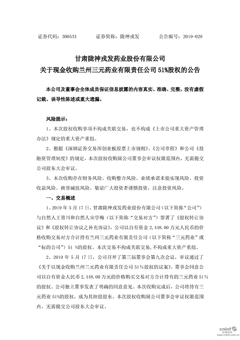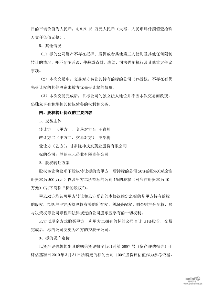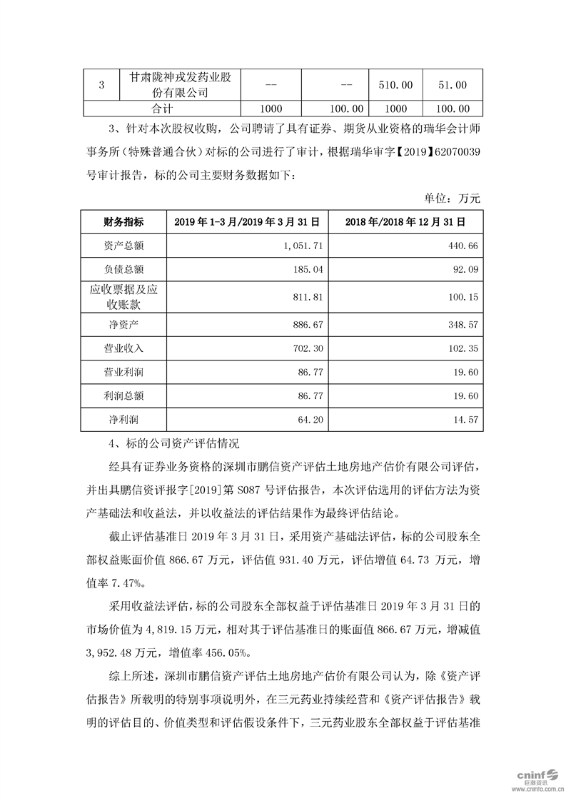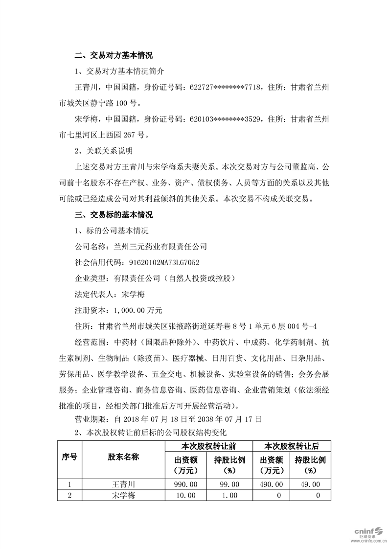 關于現金收購蘭州三元藥業有限責任公司51%股權的公告