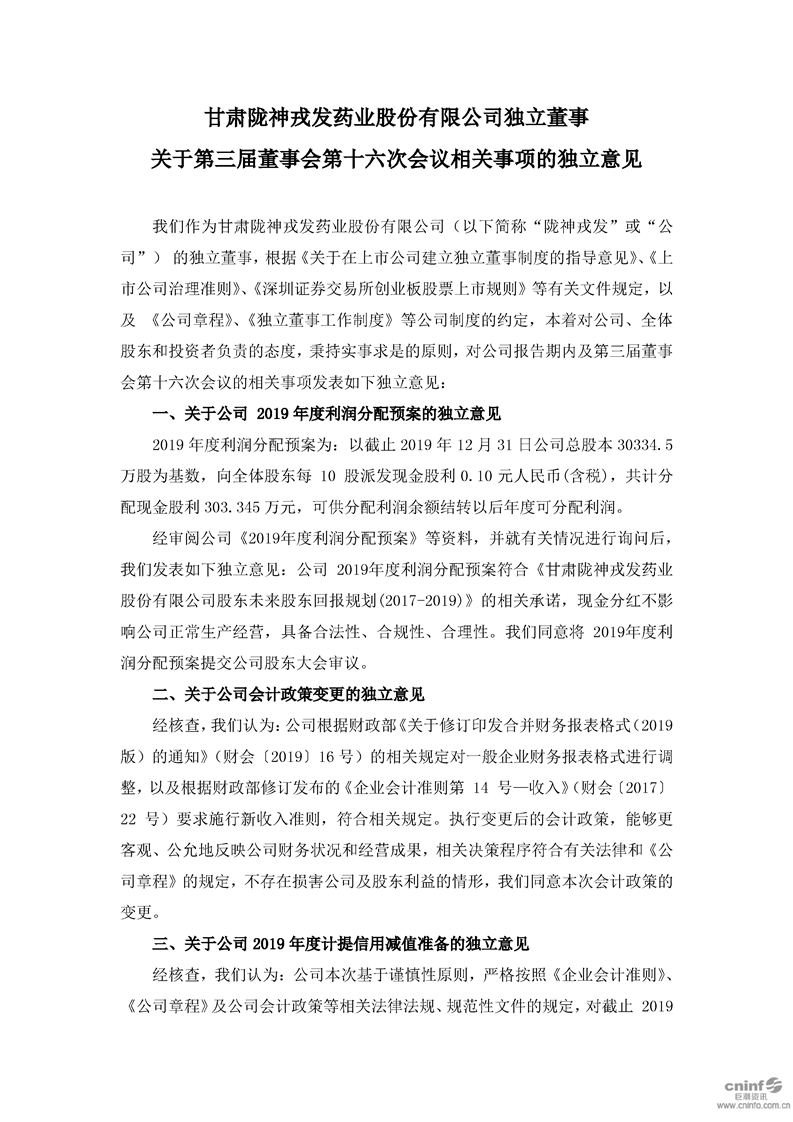 獨立董事關于第三屆董事會第十六次會議相關事項的獨立意見