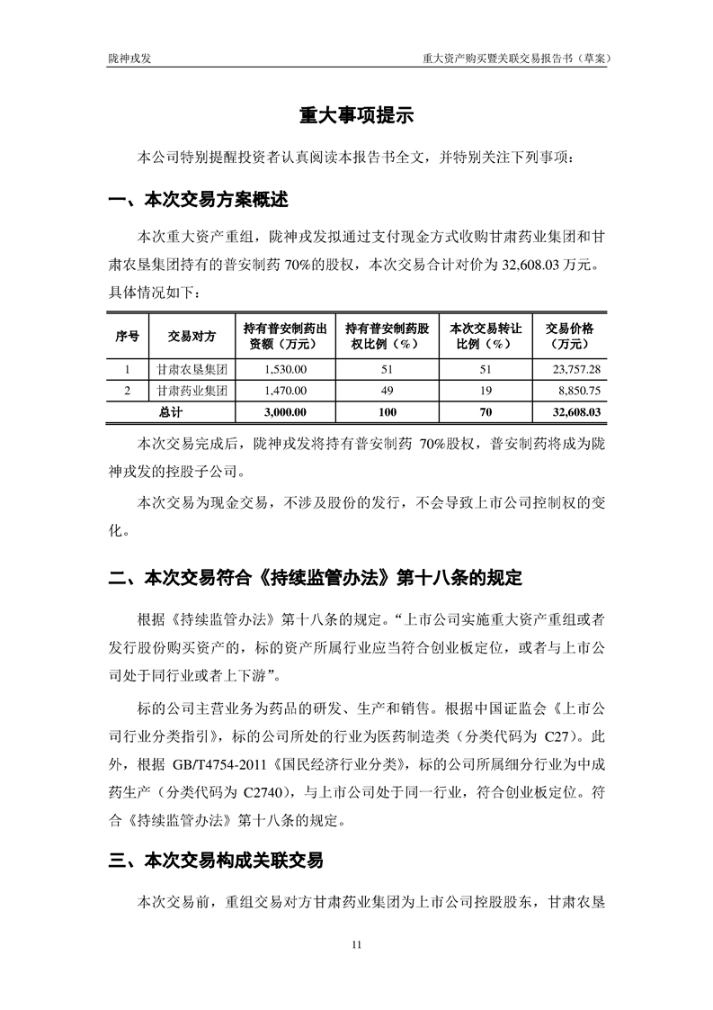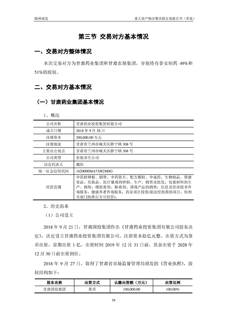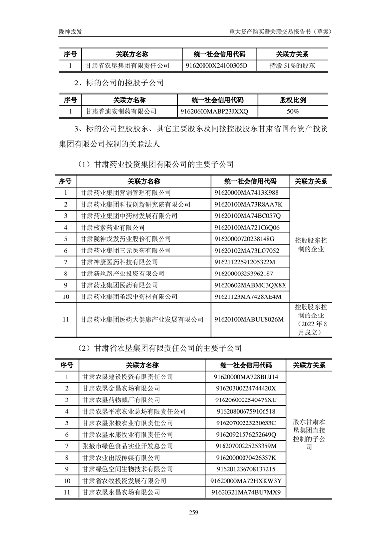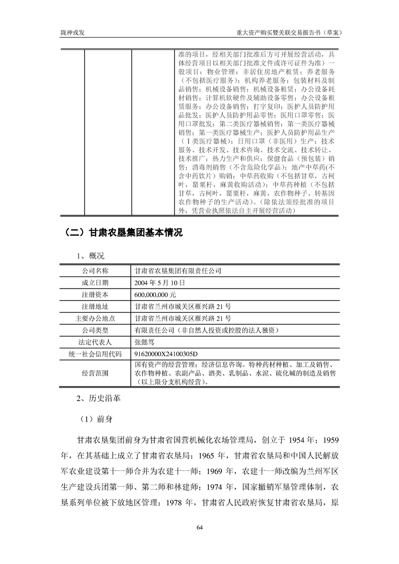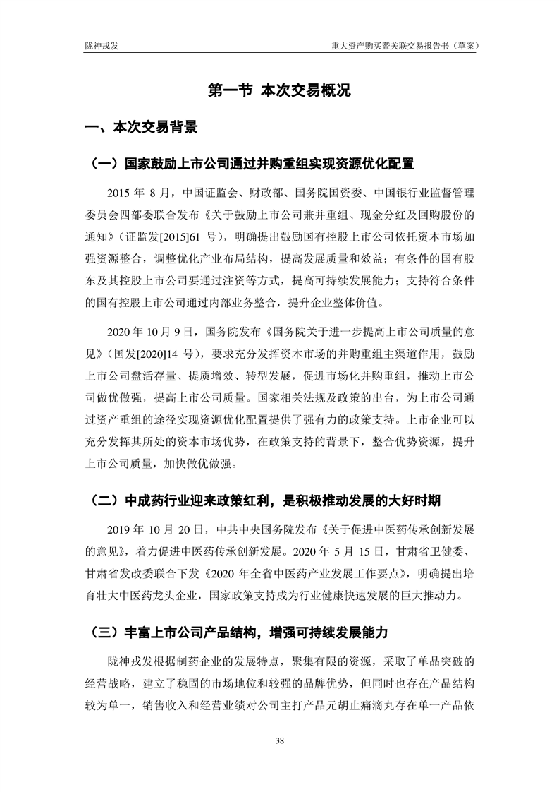 甘肅隴神戎發藥業股份有限公司重大資產購買暨關聯交易報告書(草案)