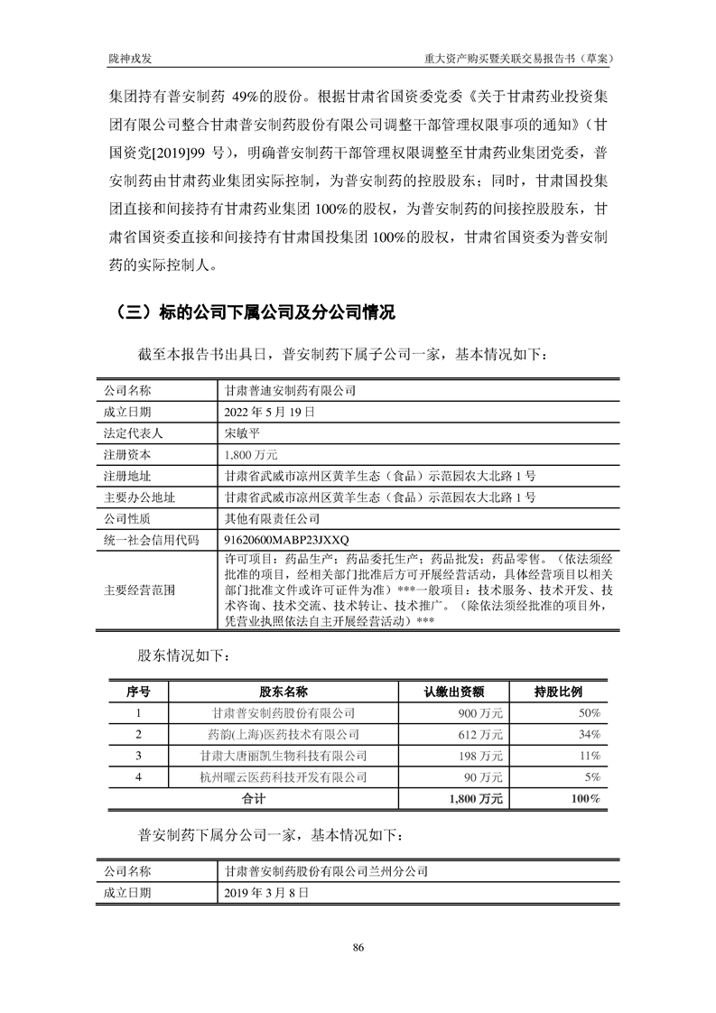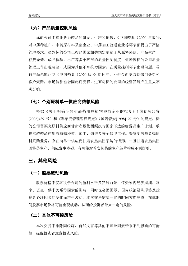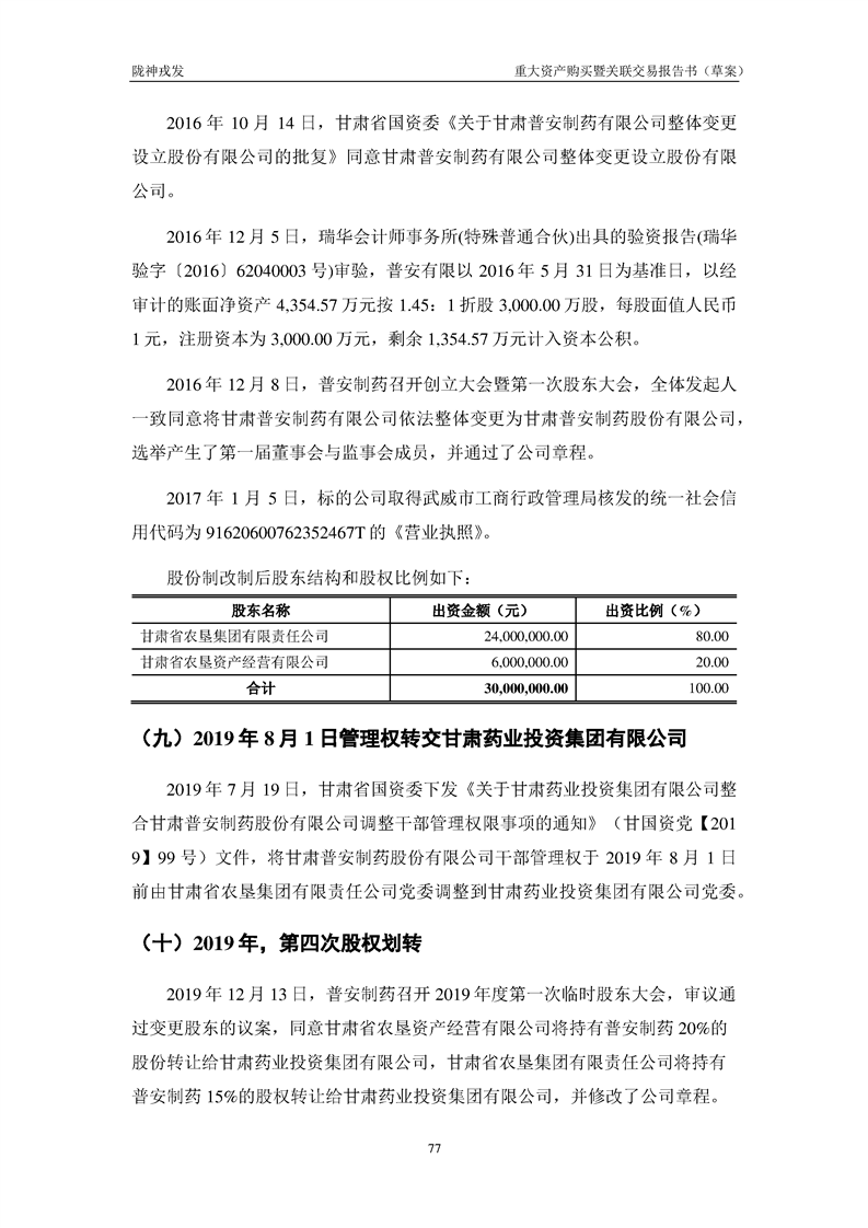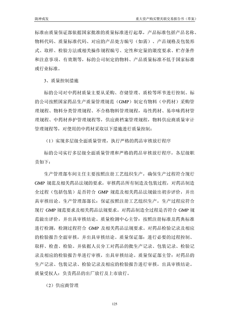 甘肅隴神戎發藥業股份有限公司重大資產購買暨關聯交易報告書(草案)