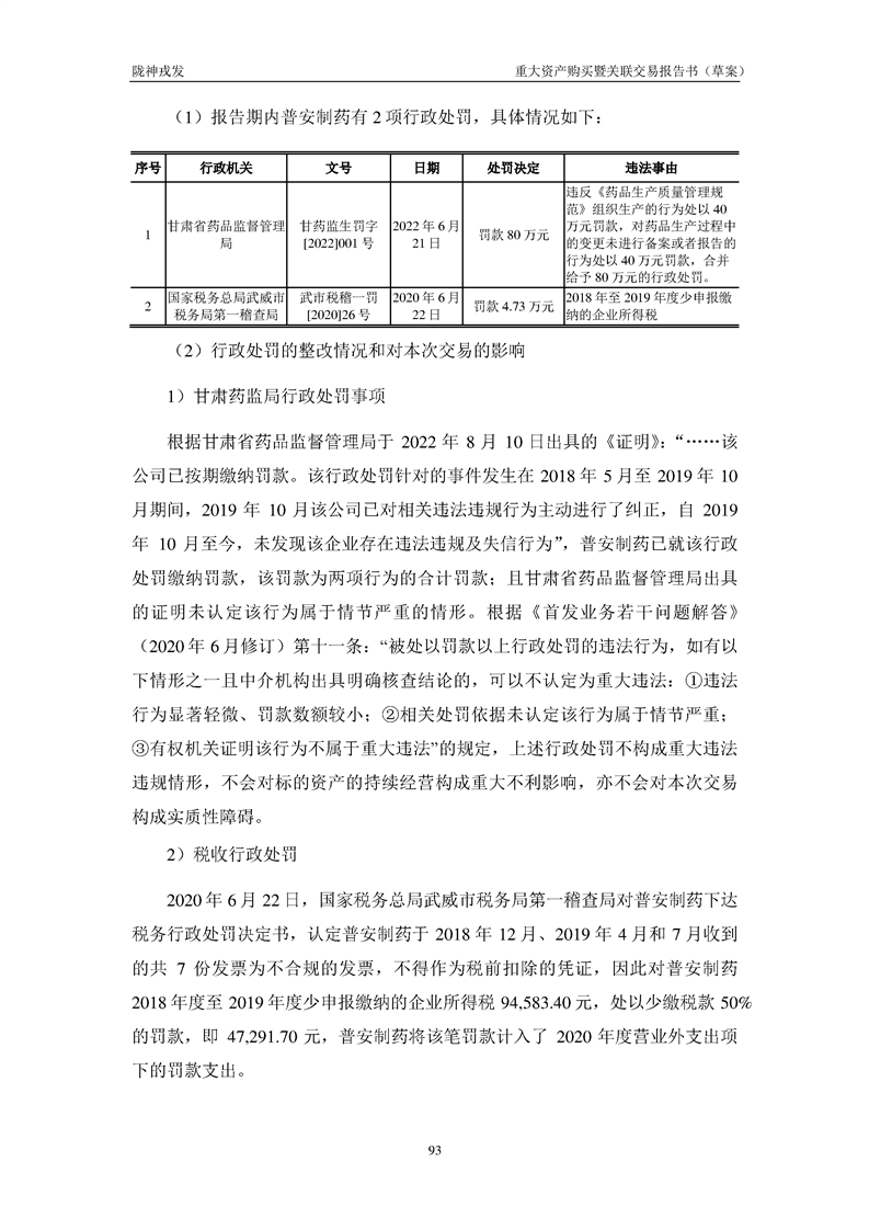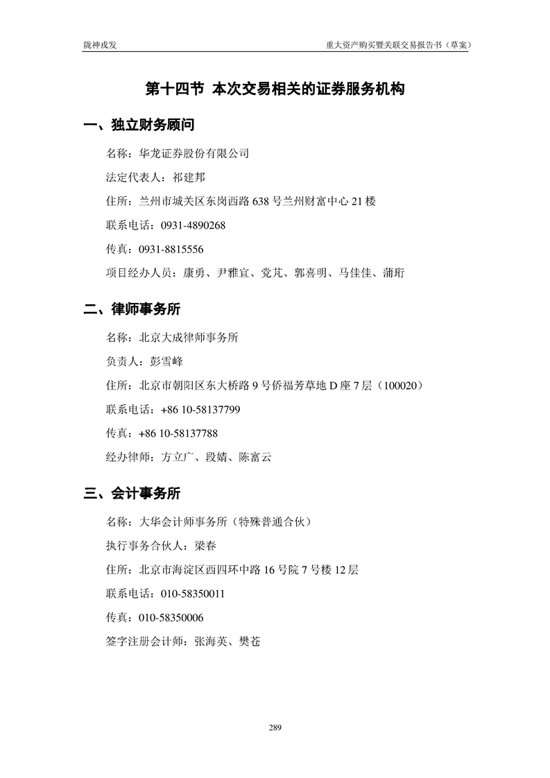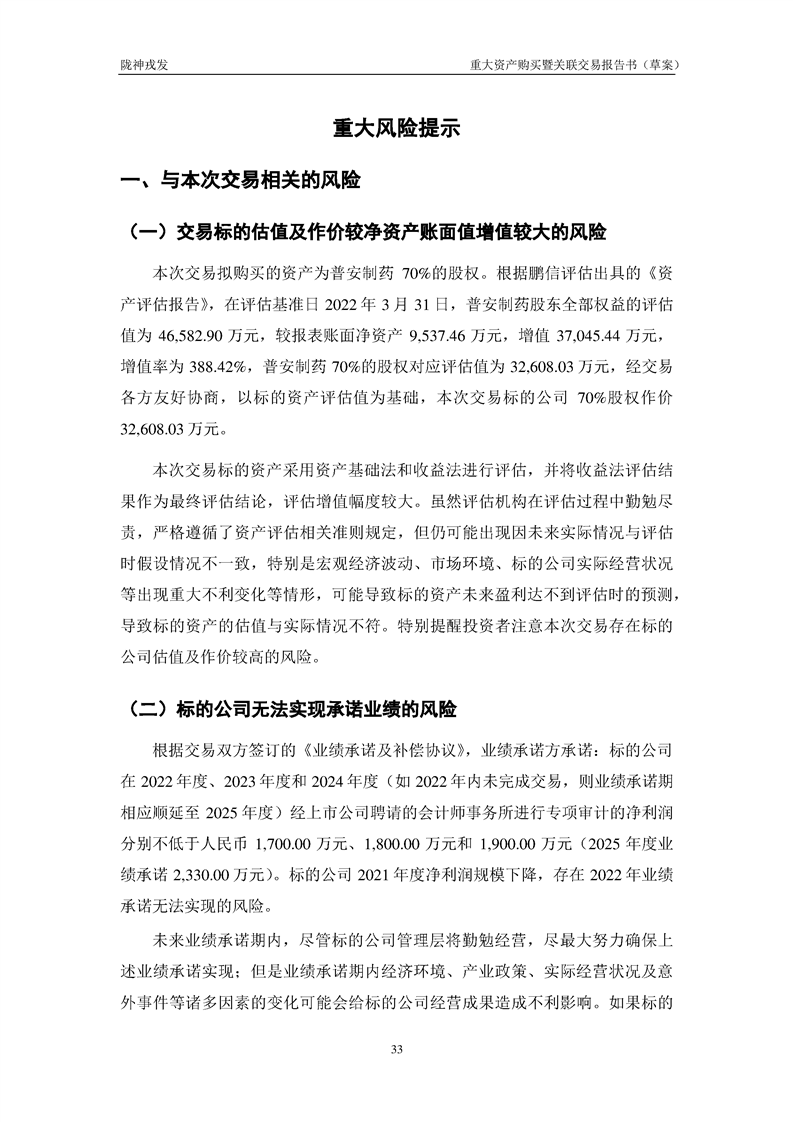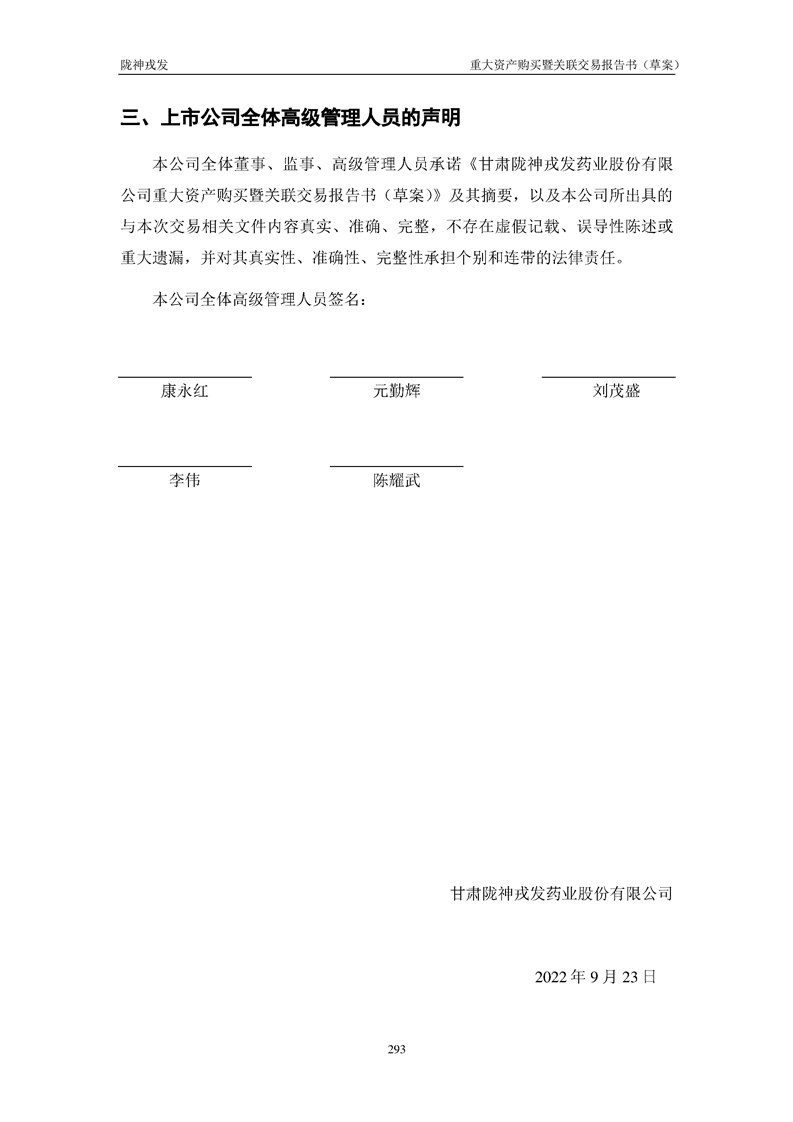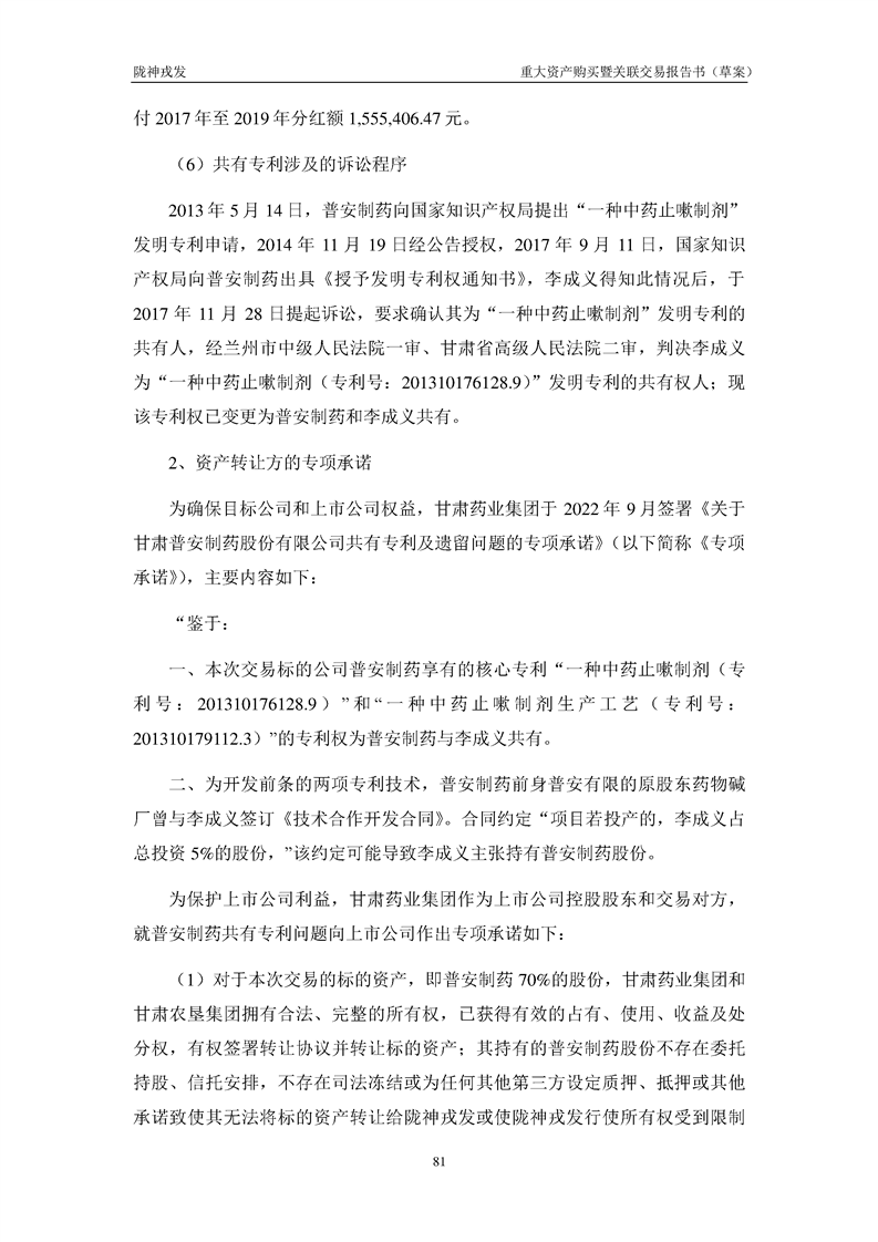 甘肅隴神戎發藥業股份有限公司重大資產購買暨關聯交易報告書(草案)