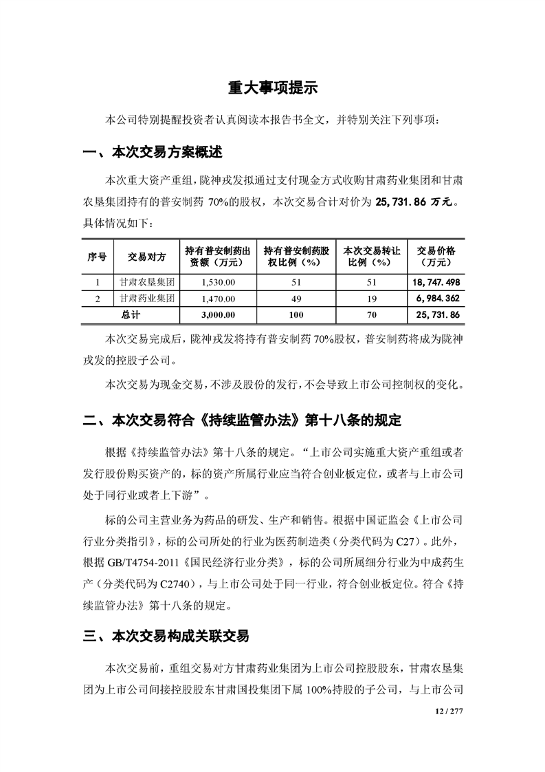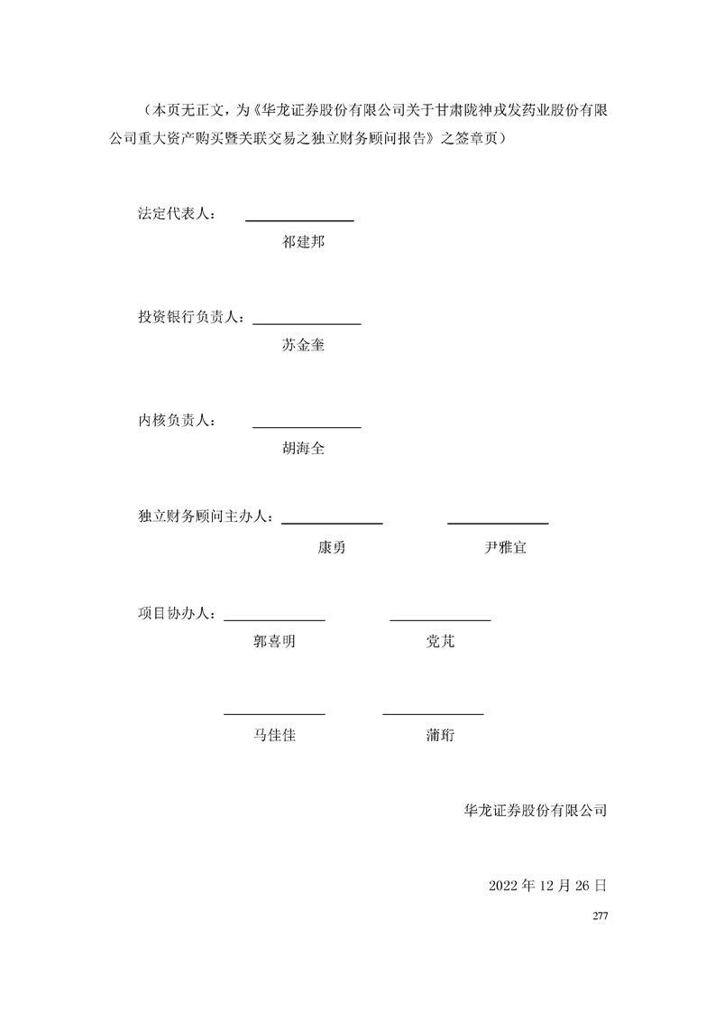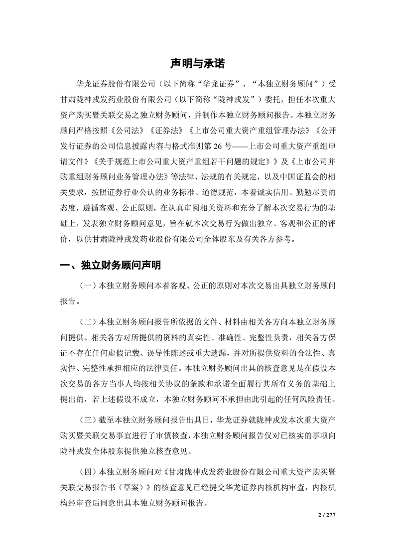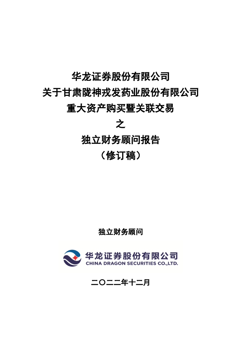 華龍證券股份有限公司關于甘肅隴神戎發藥業股份有限公司重大資產購買暨關聯交易之獨立財務顧問報告(二次修訂稿)