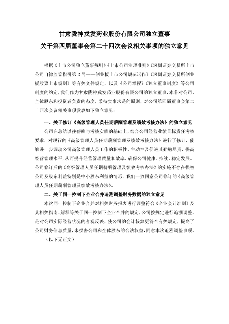 獨立董事關于第四屆董事會第二十四次會議相關事項的獨立意見