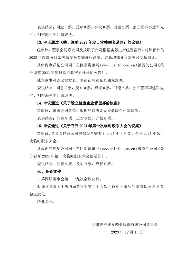 第四屆董事會第二十九次會議決議公告