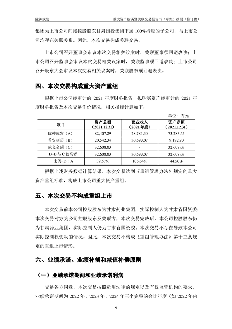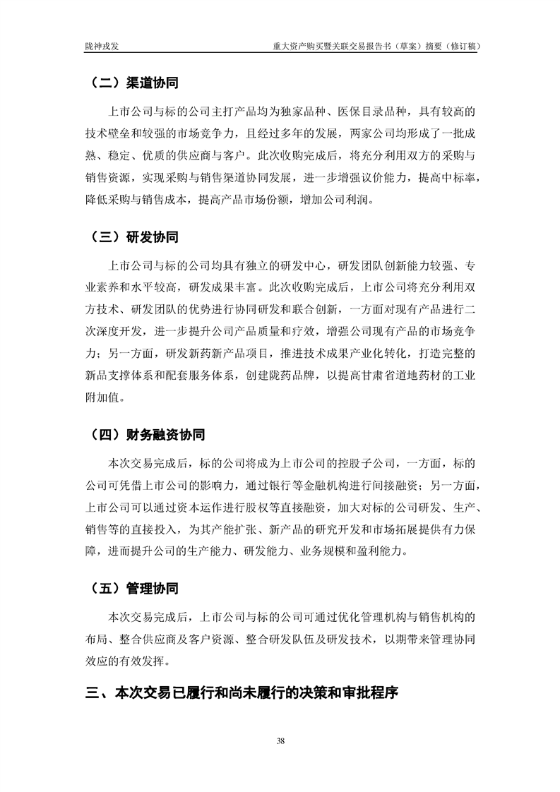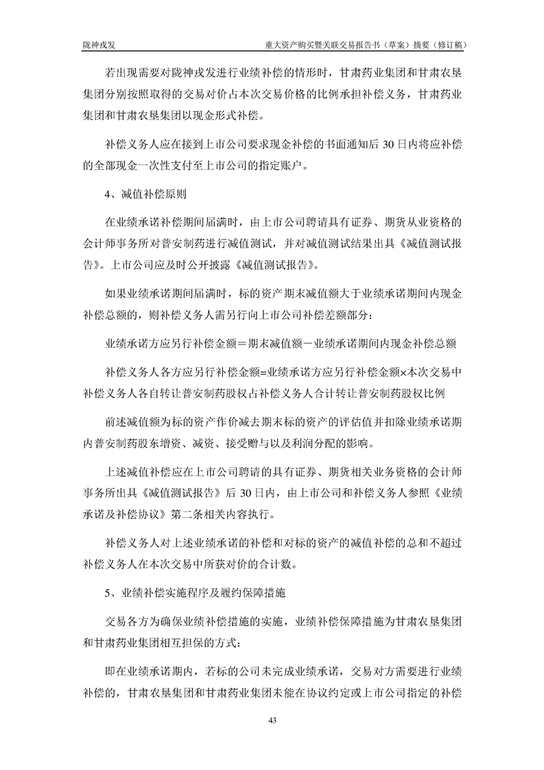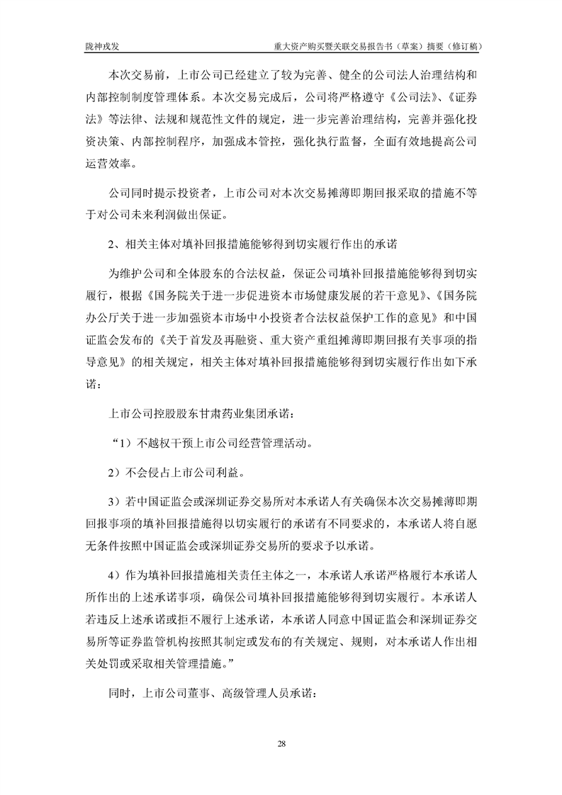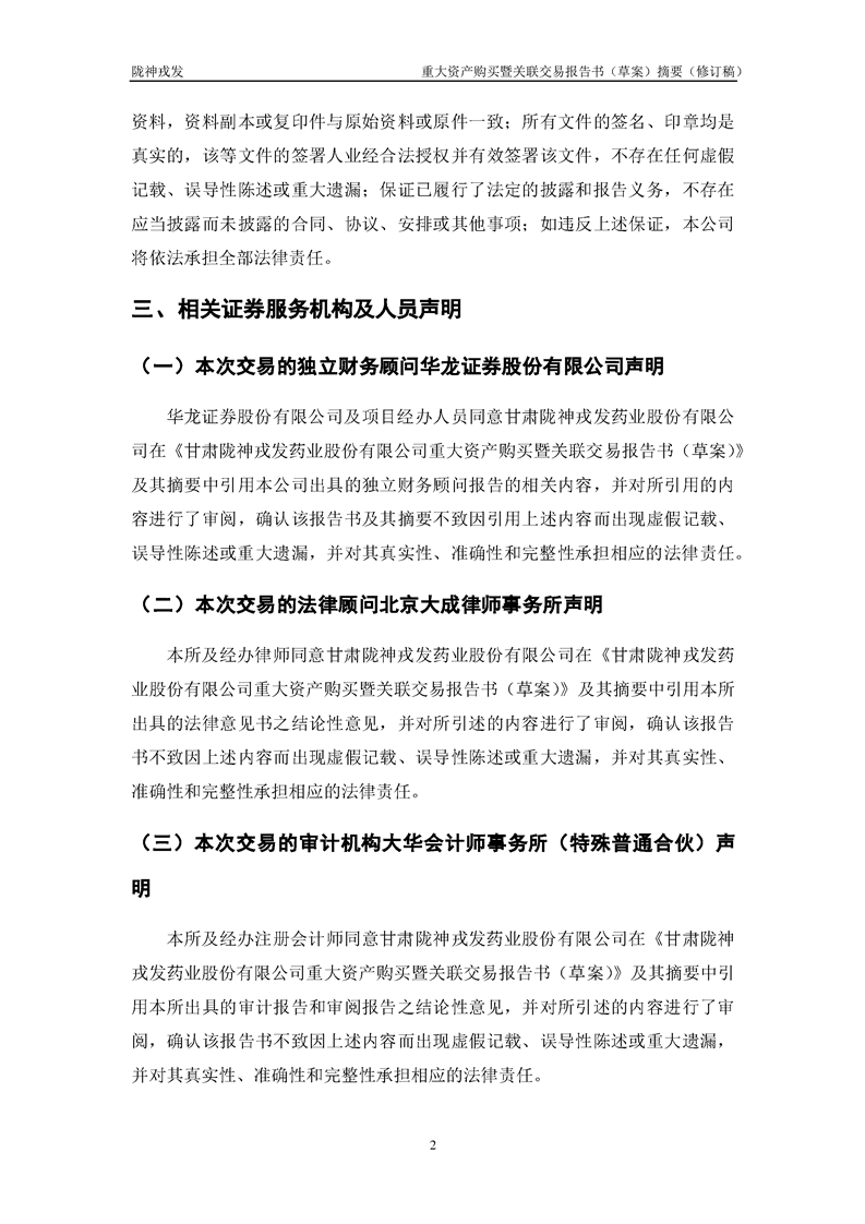 甘肅隴神戎發藥業股份有限公司重大資產購買暨關聯交易報告書(草案)摘要(修訂稿)