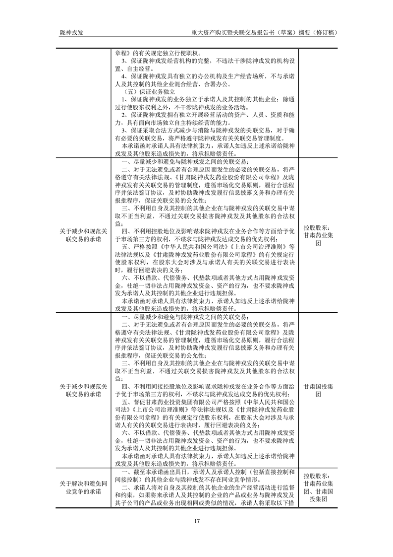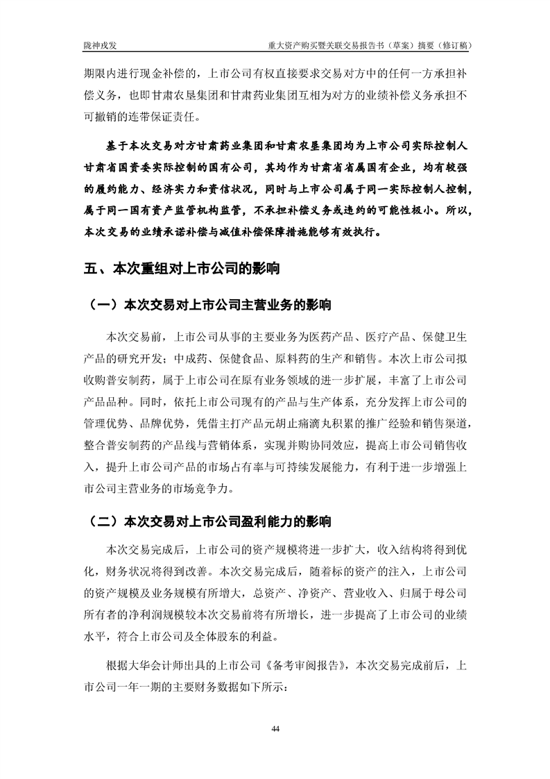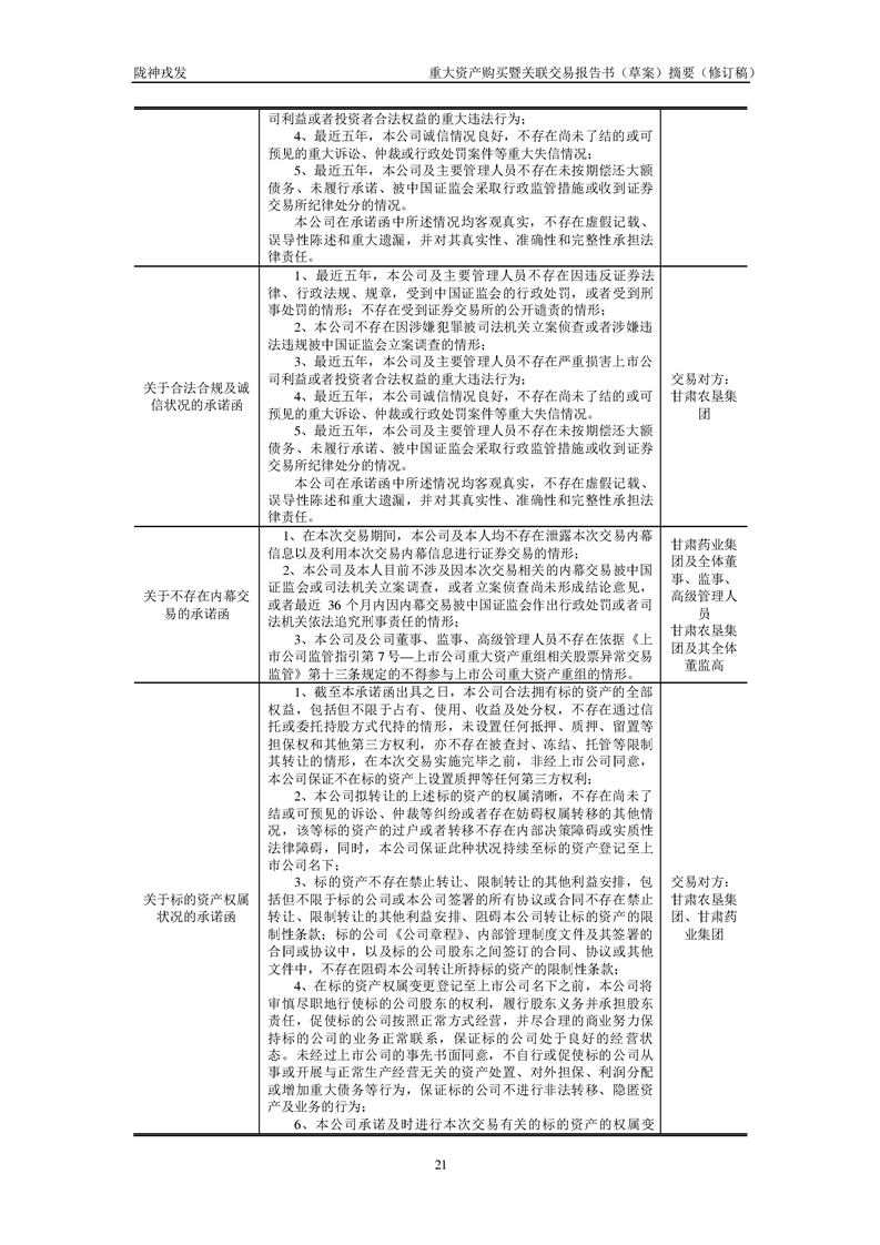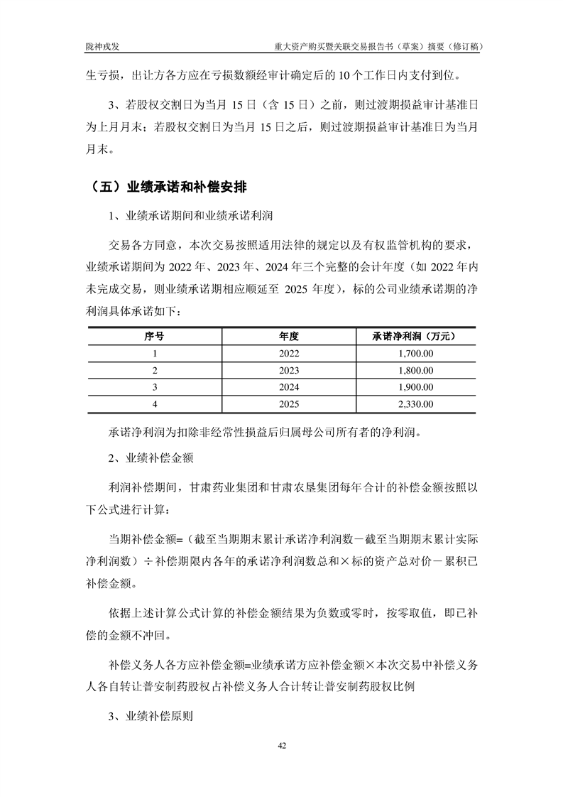 甘肅隴神戎發藥業股份有限公司重大資產購買暨關聯交易報告書(草案)摘要(修訂稿)