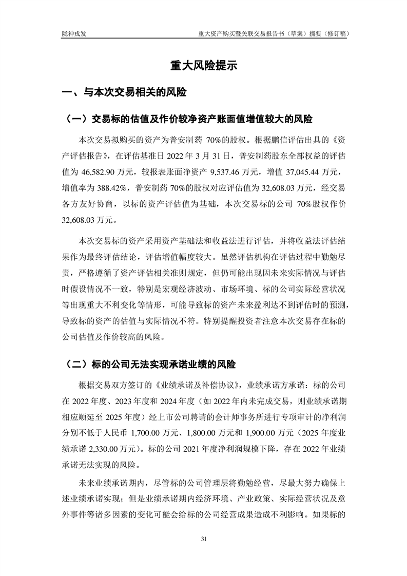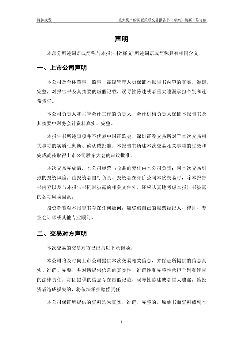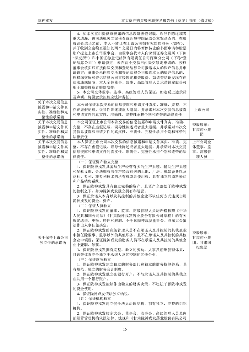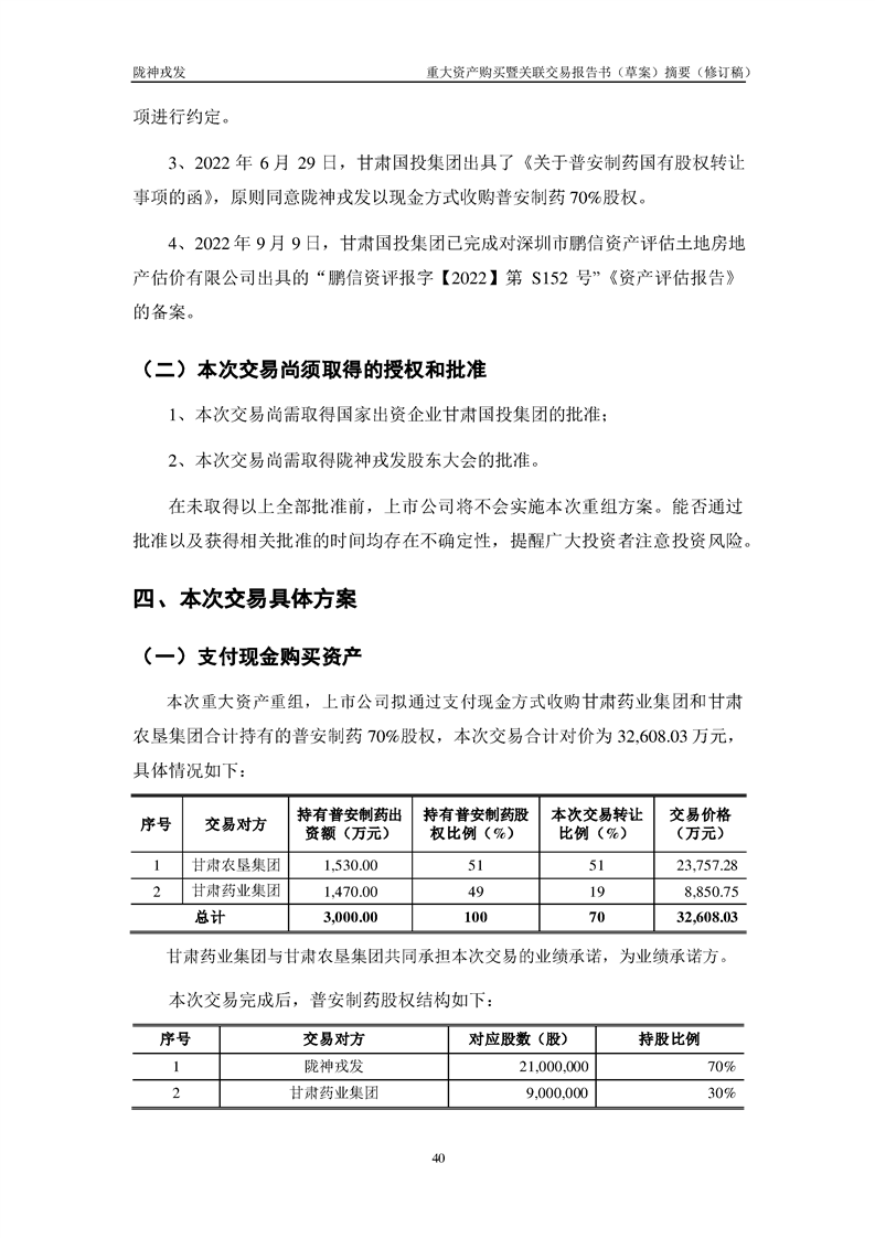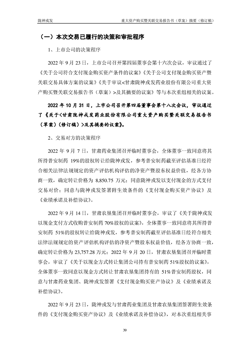 甘肅隴神戎發藥業股份有限公司重大資產購買暨關聯交易報告書(草案)摘要(修訂稿)