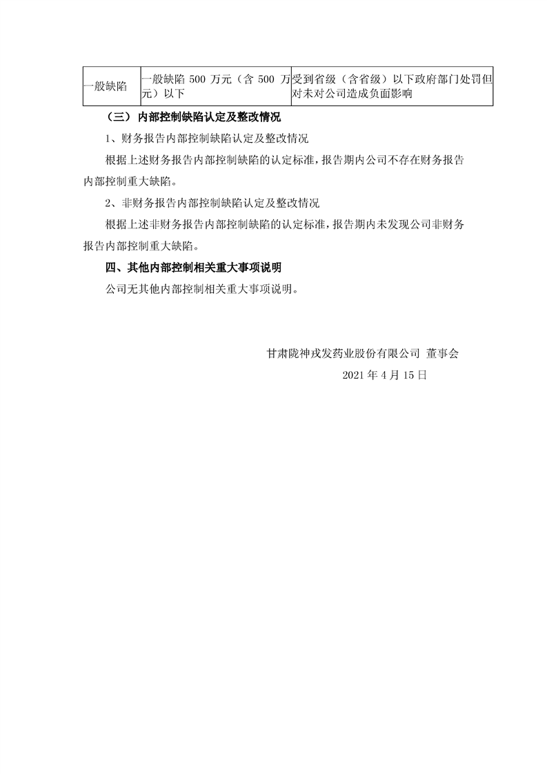 2020年度內(nèi)部控制評價報告