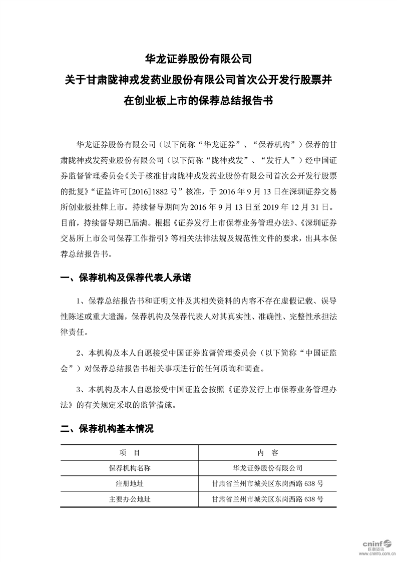 華龍證券股份有限公司關(guān)于公司首次公開(kāi)發(fā)行股票并在創(chuàng)業(yè)板上市的保薦總結(jié)報(bào)告書(shū)