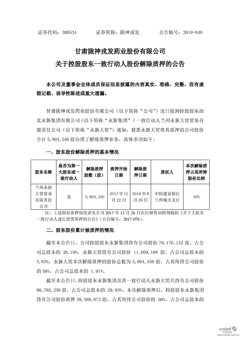 關(guān)于控股股東一致行動人股份解除質(zhì)押的公告