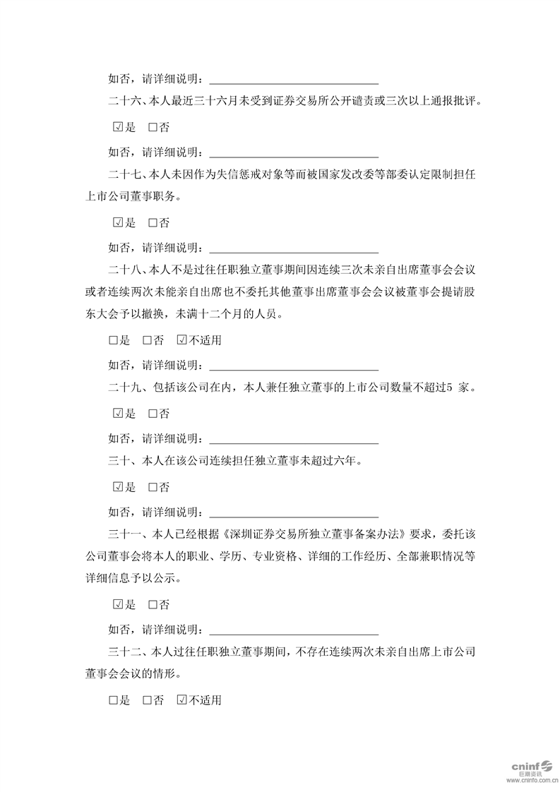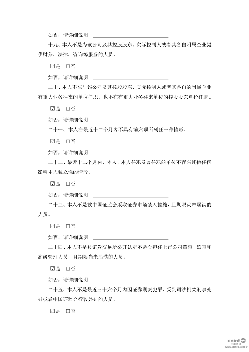 獨(dú)立董事候選人聲明