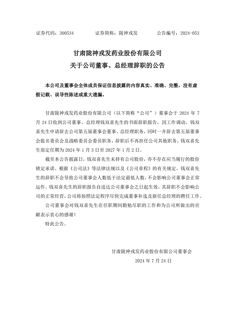 關(guān)于公司董事、總經(jīng)理辭職的公告