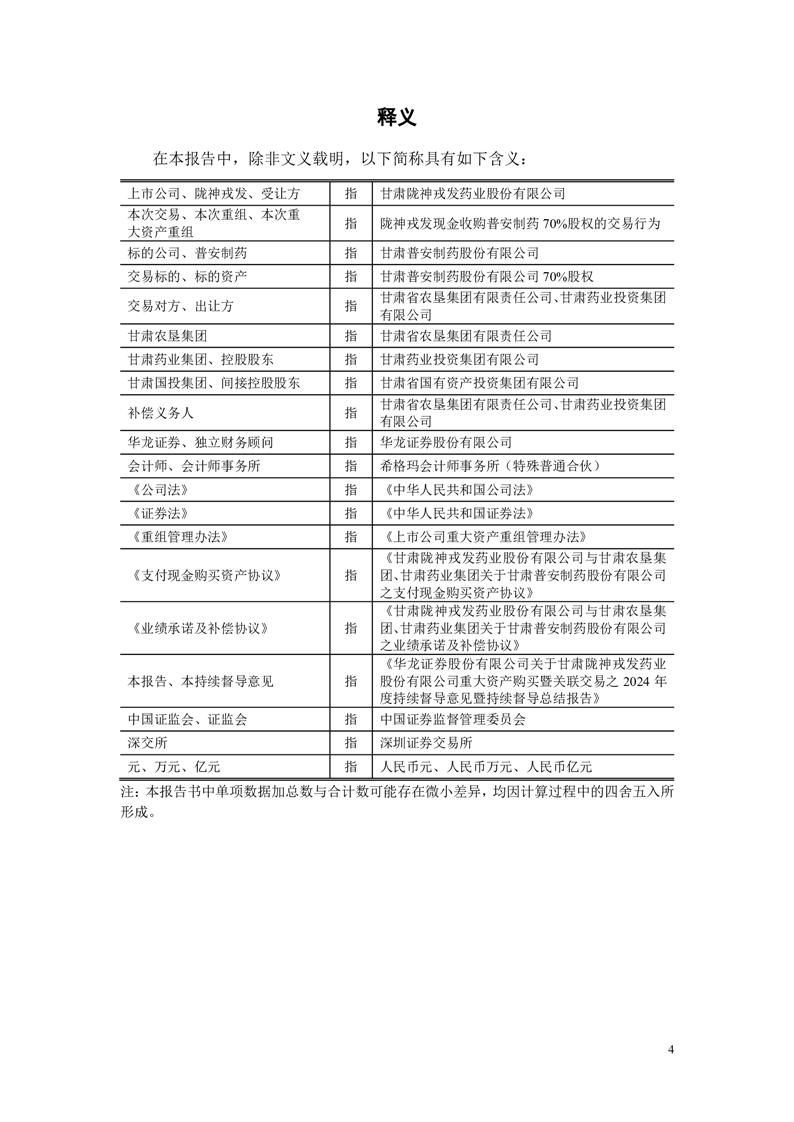 華龍證券股份有限公司關(guān)于甘肅隴神戎發(fā)藥業(yè)股份有限公司重大資產(chǎn)購買暨關(guān)聯(lián)交易之2024年度持續(xù)督導(dǎo)意見暨持續(xù)督導(dǎo)總結(jié)報(bào)告