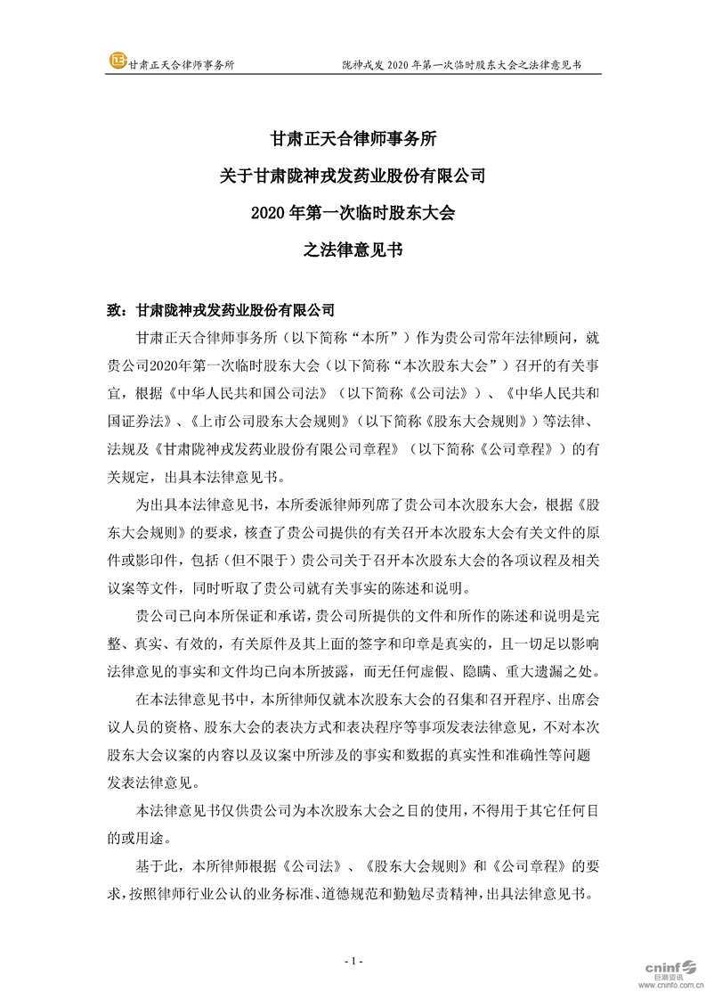2020年第一次臨時股東大會之法律意見書