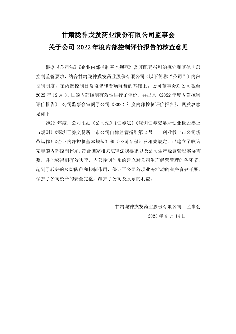 監事會關于公司2022年度內部控制評價報告的核查意見
