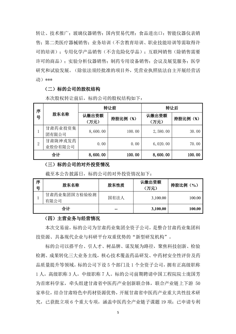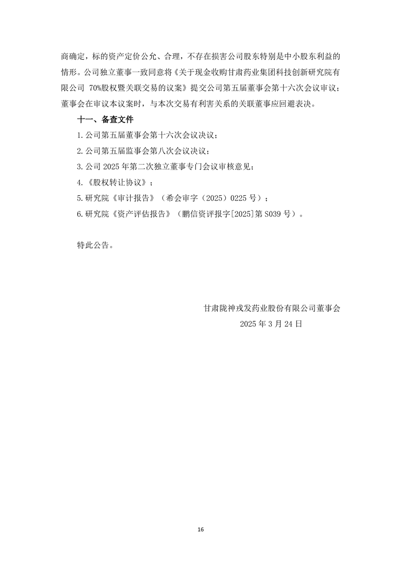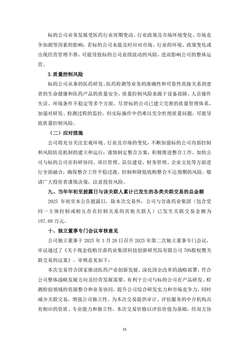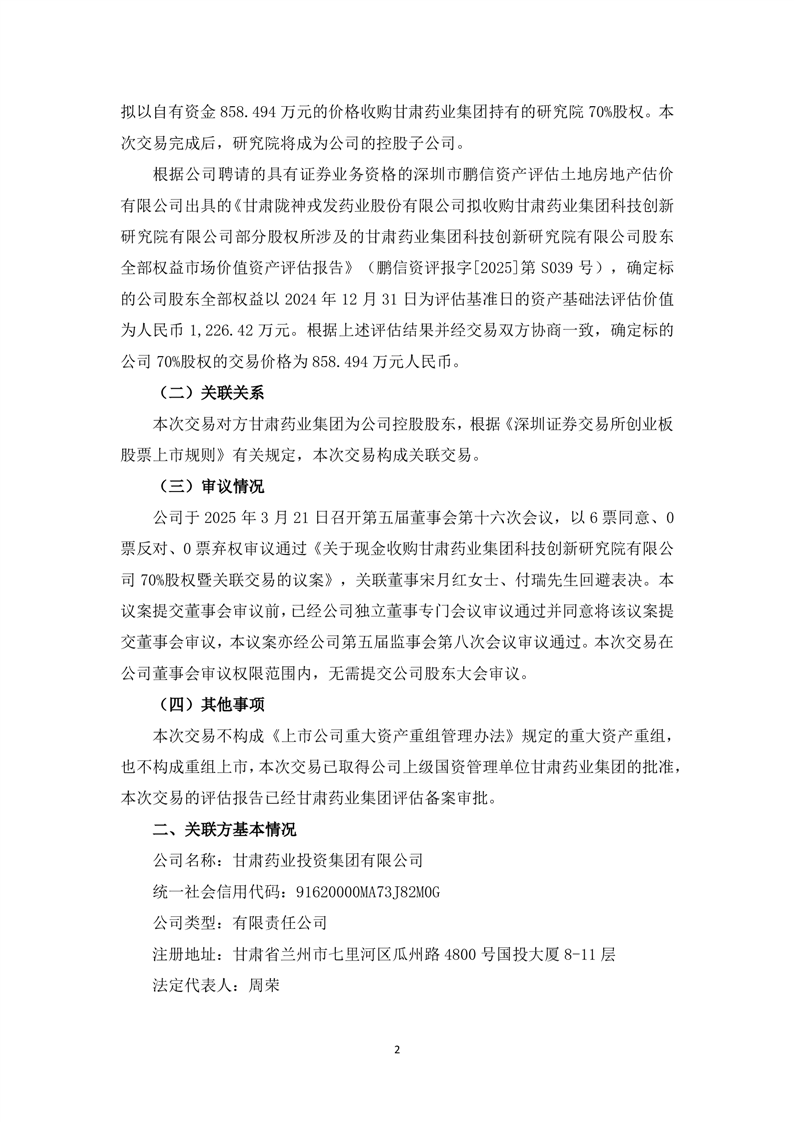 關于現金收購甘肅藥業集團科技創新研究院有限公司70%股權暨關聯交易的公告