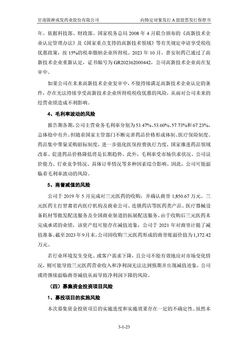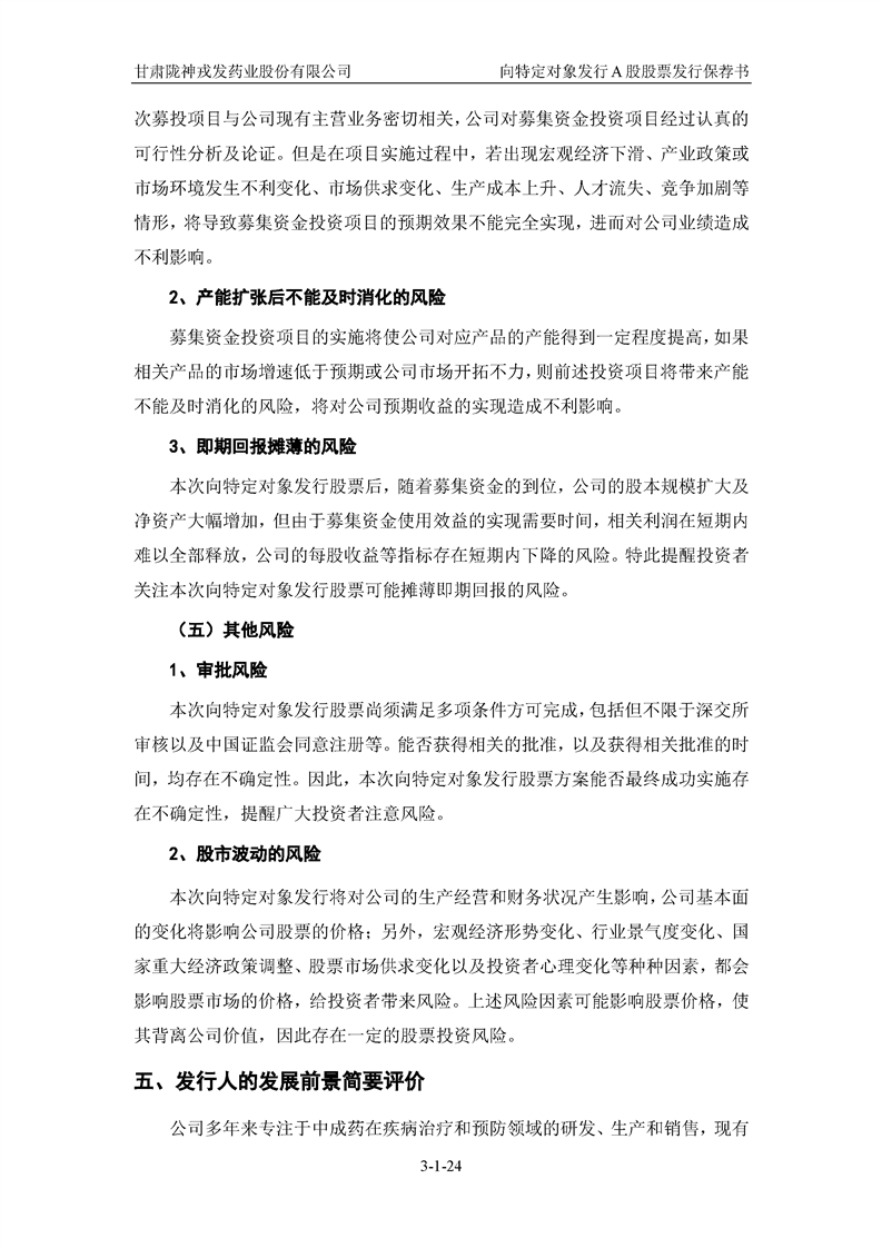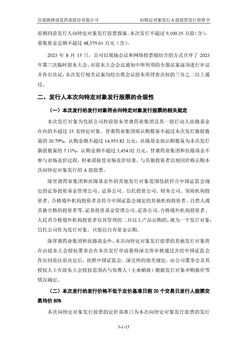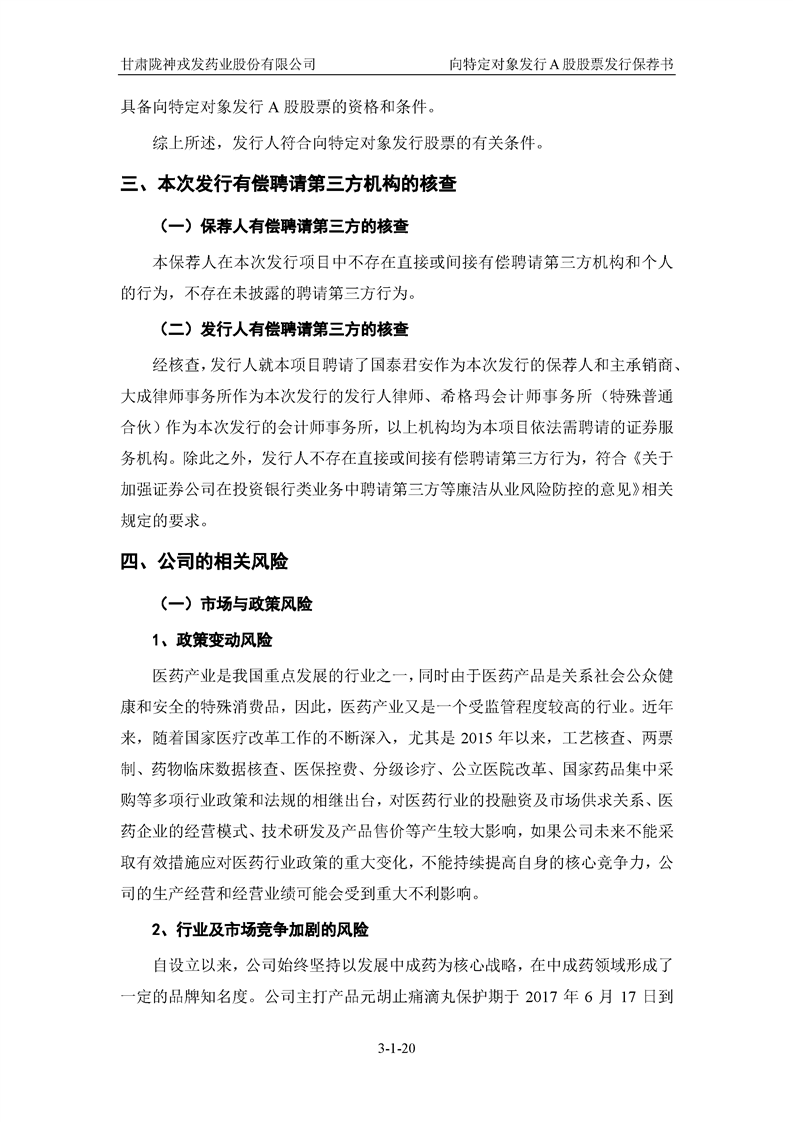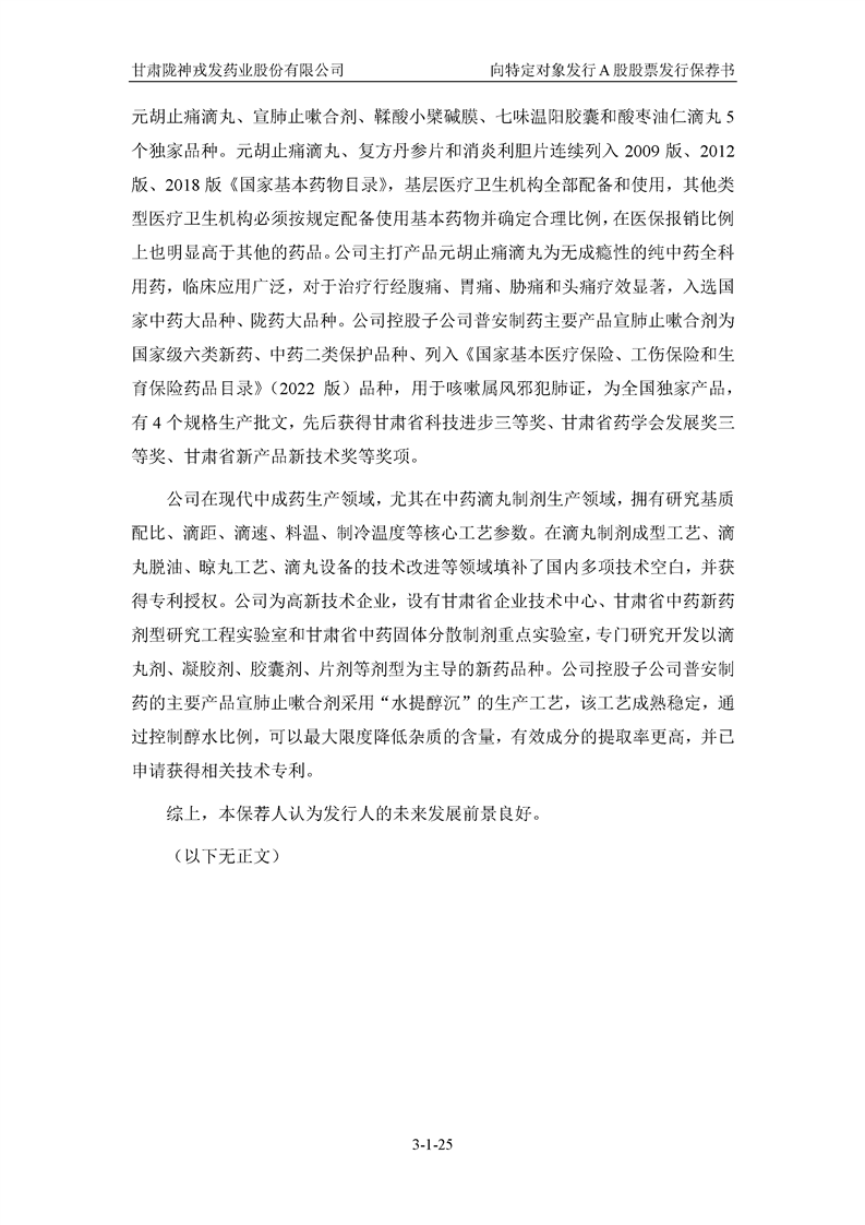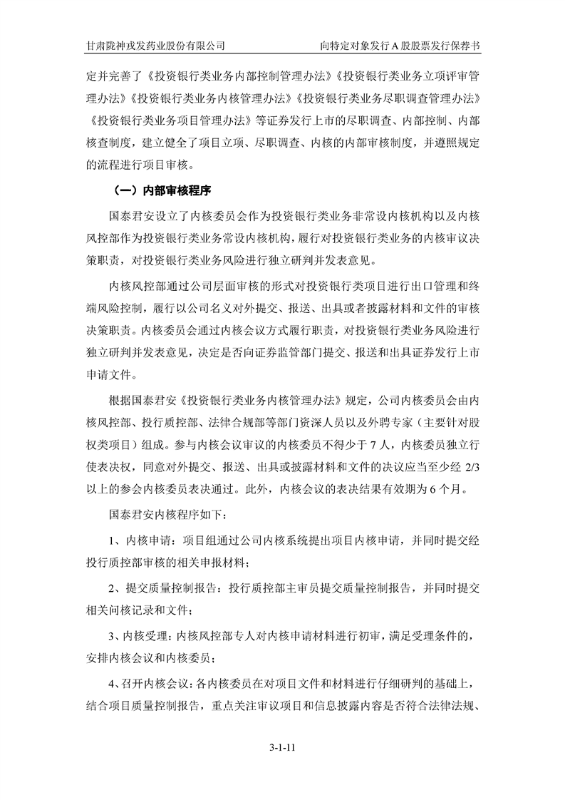 國泰君安證券股份有限公司關于甘肅隴神戎發藥業股份有限公司向特定對象發行A股股票之發行保薦書