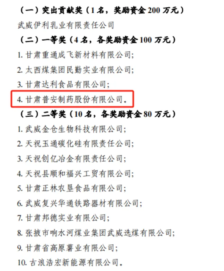 2月5日,武威市召開高質量發展重大項目建設暨招商引資工作動員大會,會議隆重表彰了全市2024年度經濟高質量發展貢獻突出的高質量發展重大項目、工業企業和工業園區。普安制藥在會上被授予“武威市高質量穩增長工業企業一等獎”。