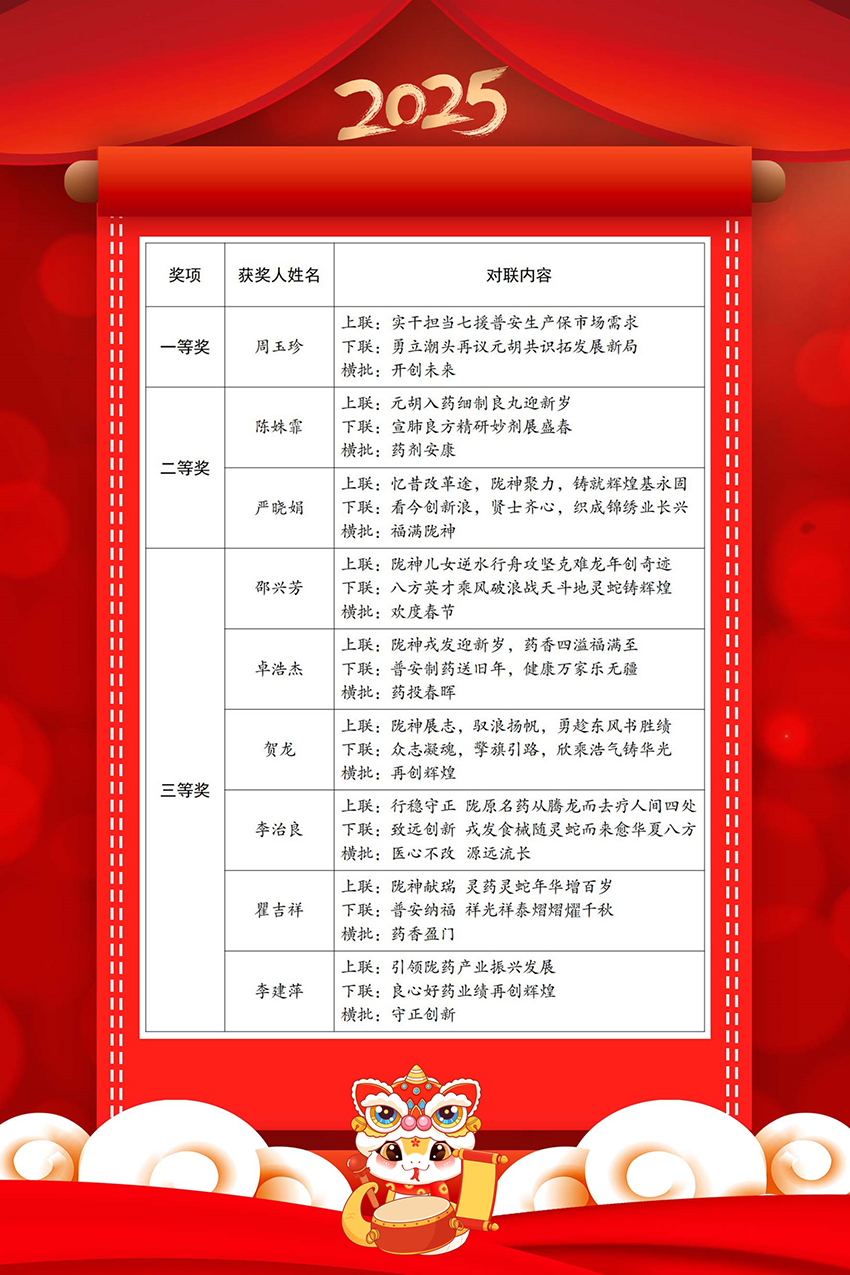 本次征集活動共征集到春聯作品41幅,最終評審出一等獎1名,二等獎2名,三等獎6名,參與獎若干。現公布如下。