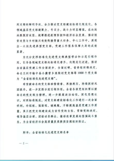 近日,甘肅省委組織部印發(fā)《關(guān)于命名1000個(gè)全省標(biāo)準(zhǔn)化先進(jìn)黨支部的通知》,對(duì)在決戰(zhàn)決勝脫貧攻堅(jiān)、統(tǒng)籌推進(jìn)疫情防控和經(jīng)濟(jì)社會(huì)發(fā)展、推動(dòng)脫貧攻堅(jiān)與鄉(xiāng)村振興有效銜接等重大任務(wù)、中心工作中涌現(xiàn)出的1000個(gè)標(biāo)準(zhǔn)化先進(jìn)黨支部進(jìn)行了命名。甘肅隴神戎發(fā)藥業(yè)股份有限公司所屬生產(chǎn)黨支部光榮上榜。