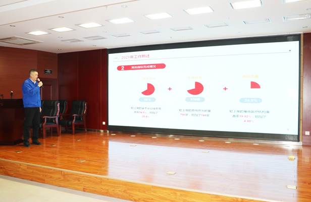 公司營銷副總監史偉代表營銷中心對2021年銷售工作進行全面總結分析,并就2022年銷售計劃和保障措施向大會進行了報告。