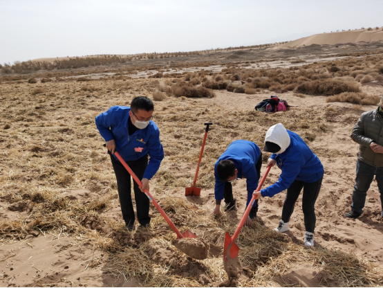 公司志愿者學(xué)習(xí)打草格、種梭梭樹