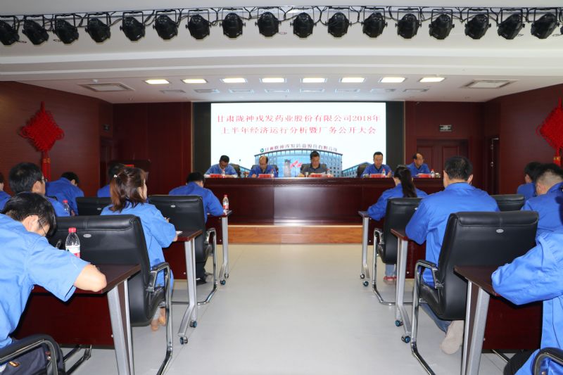 6月14日上午,隴神戎發召開2018年上半年經濟運行分析會暨廠務公開大會,總結分析上半年經濟運行情況,查找存在的問題及不足,重點部署下半年工作。公司董事長康海軍,總經理康永紅及班子成員,中層以上干部、班組長以上人員共計100余人參加了會議。會議由總經理康永紅主持。