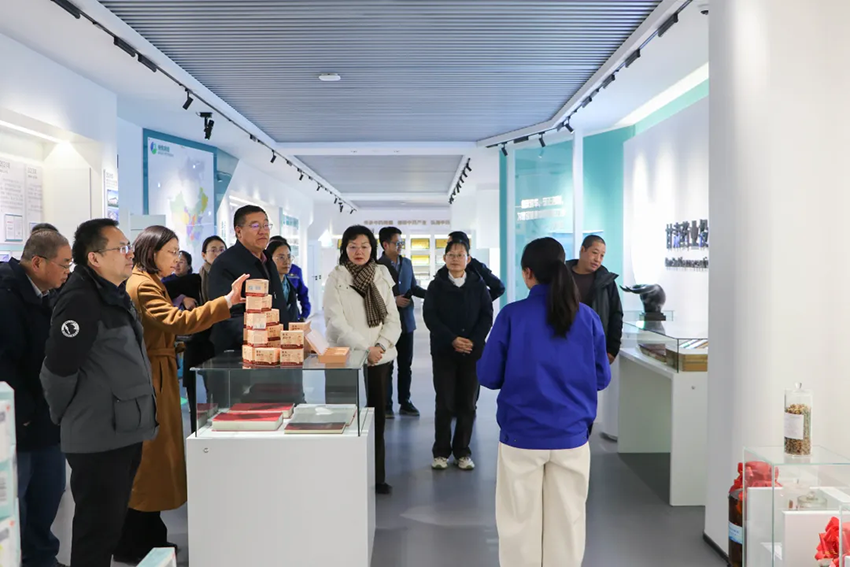 座談會前,蘭州大學生命科學學院一行首先參觀了隴神戎發(fā)中藥材標本長廊,近距離直觀感受近40年厚重的中藥材“活化石”。在企業(yè)文化展廳,全面了解甘肅藥業(yè)集團產(chǎn)業(yè)布局、科技創(chuàng)新及成果轉(zhuǎn)化等方面情況。