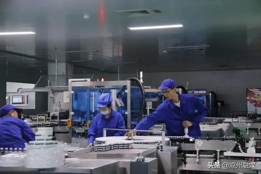 在位于黃羊工業園區的甘肅普安制藥股份公司生產車間里,一條條全自動生產線高速運轉,一瓶瓶藥劑在技術人員的標準操作下從流水線上魚貫而出……工人們精神抖擻,在各自崗位上熟練且有序地操作著,繁忙的生產奏響了奮進的樂章。