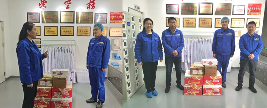 4月3日上午,隴神戎發黨委委員楊俊萍、總經理助理孫波代表公司黨委來到生產車間對將在清明節期堅守崗位的生產車間一線人員表示慰問,向他們送去公司的關懷和溫暖。