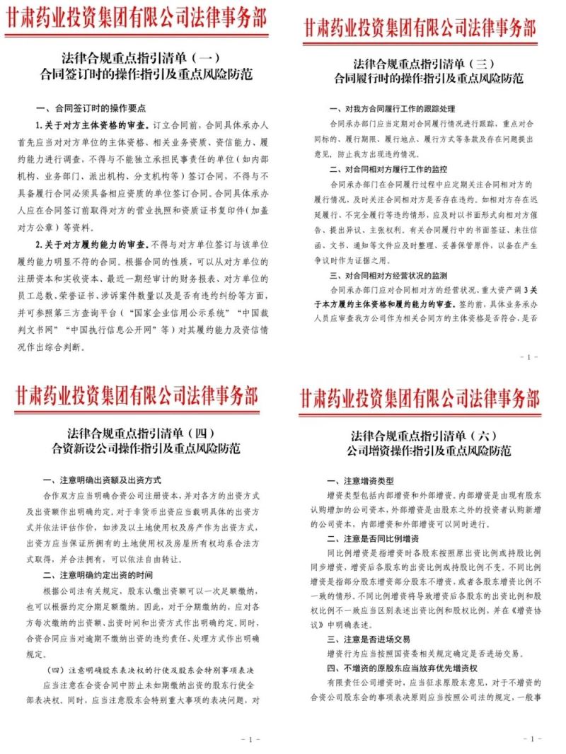 依法合規是全面落實依法治企戰略部署的客觀需求,也是國有企業依法推進治理體系及治理能力現代化的必然選擇。甘肅藥業集團始終堅持以習近平新時代中國特色社會主義思想為指導,認真貫徹落實習近平法治思想,緊緊圍繞中心發展大局,找定位、強對標,創新開展“6+1”行動,切實推進合規管理各項工作走深走實。
